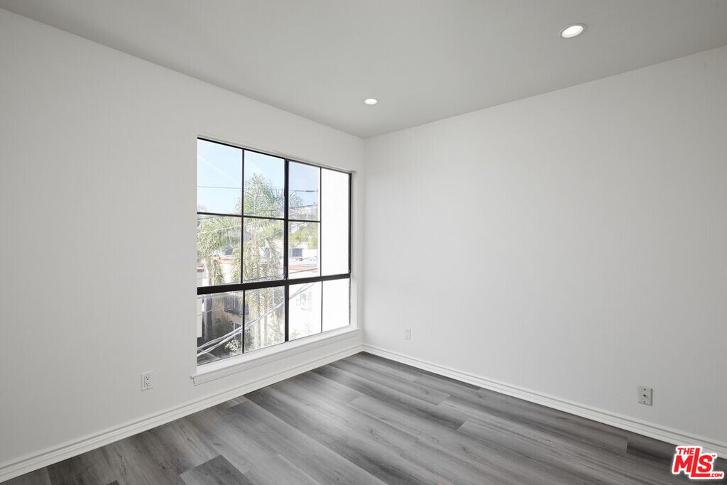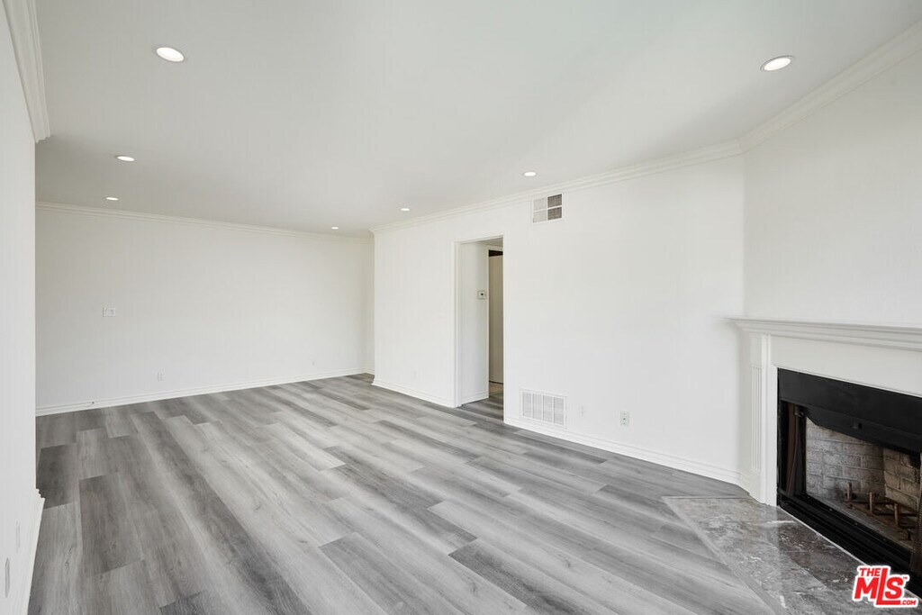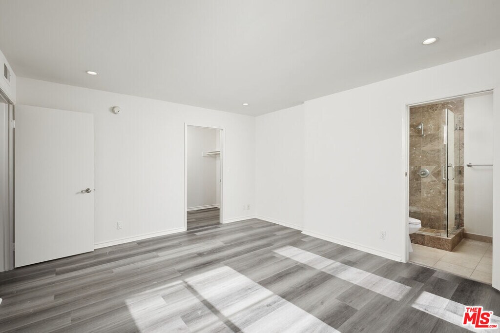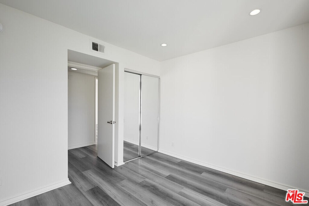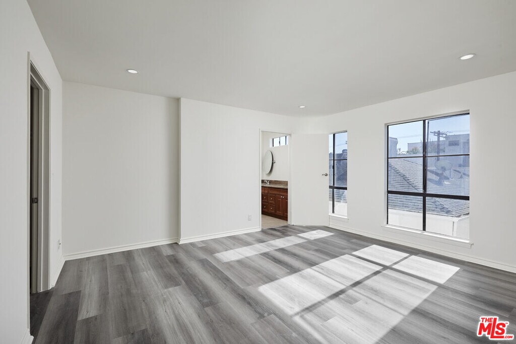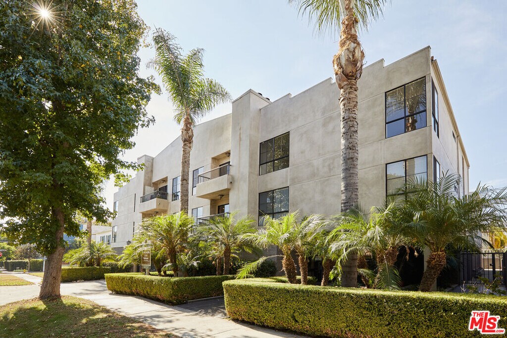 TOP FLOOR light & bright updated 3bed 2bath Corner Unit. Kitchen has quartz counter-tops and stainless steel appliances with a dining area by the windows. The patio is off the living room with a bonus storage closet. Hallway leads you to the three bedrooms. Primary bedroom has ensuite bathroom with double sinks and a large walk-in closet. 2nd bedroom is spacious and drenched with light. 2nd bathroom is in the hallway. Other features include central AC, in-unit laundry room with storage and two assigned parking spots in a gated garage. A secure smaller 16 unit building only two blocks walk to Melrose Place. PET FRIENDLY. MLS# 25602423