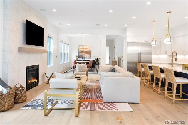 Immaculate rental available in Congress Park - offering the ease and convenience of a new build with all the amenities and upgrades in an unbeatable location. The main floor is open with a sprawling living room opening to a covered patio + yard. The kitchen is a gourmet's dream with tons of storage + counterspace and an informal eat-in area. The main floor also offers a home office + guest powder room. Upstairs you will find a luxurious primary suite and 2 secondary bedrooms along with a shared hall bathroom and an en-suite bathroom, plus a laundry room. The basement is finished with a large tv/rec room, wet bar area, bedroom and guest bathroom. The yard is fully fenced with a front porch and back patio which is covered for year-round use. Don't miss out on this great home. Single Family Residence MLS# 3105456
