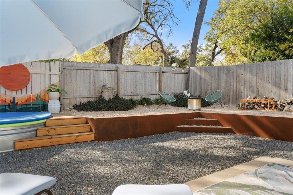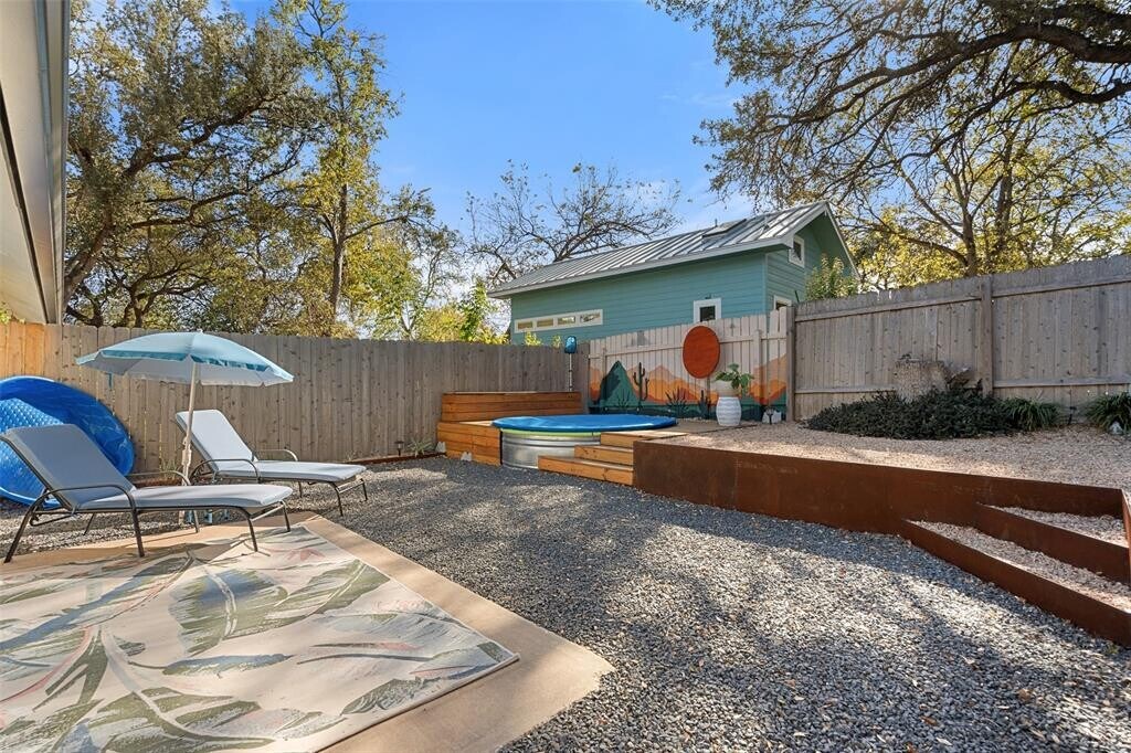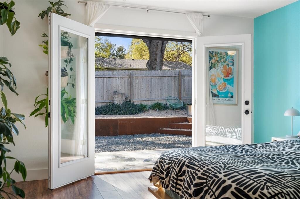 Renovated duplex unit with a stunning backyard! Upon entry, soaring ceilings open up the main living area while vinyl plank flooring gives it a bright and modern feel. The open kitchen has been updated with black pearl granite countertops with a leathered finish, white cabinets, and black fixtures and comes equipped with updated stainless-steel appliances including a gas range. Enjoy breakfast at the bar top or sit down for a meal with friends and family in the eat-in dining area. Retreating to the primary bedroom, you will find high ceilings and natural light streaming in from french doors leading to the backyard. The secondary bedrooms offers plenty of space for your guests or a private home office. Custom closets including a walk-in closet in the primary bedroom offer plenty of storage space. Both bathrooms have been updated with beautiful tile flooring. Step outside to discover the best feature of this home, the expansive backyard. Idea for entertaining with xeriscape landscaping for easy maintenance, it is a private oasis. Cool off in the cowboy pool, relax by the fire pit, or enjoy al fresco dining. A painted mural on the fence creates quintessential Austin vibes. Beyond your front door, enjoy all that South Austin has to offer, from convenient shopping centers to the buzzing entertainment district along Menchaca Rd offering the perfect patios for your Friday happy hour. Refrigerator, Washer, and Dryer included. Utilities, pool & lawn maintenance all paid for by tenant. MLS ID 8481834