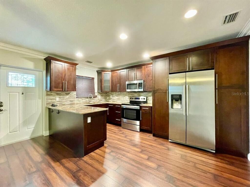 Exquisitely renovated three-bedroom,two-bathroom South Tampa residence,strategically positioned near major roads and highways for unparalleled convenience. This stunning home has undergone a complete transformation,featuring a custom kitchen adorned with rich espresso cabinets crafted from solid wood,complemented by premium granite countertops and a stylish backsplash. Upgraded stainless steel appliances enhance both the functionality and aesthetic appeal of the kitchen space. The property boasts upgraded electrical and plumbing systems,along with a newer AC system,ensuring optimal comfort and efficiency. The bathrooms have been tastefully remodeled,showcasing solid wood vanities topped with granite countertops for a touch of luxury. Newer laminate floors grace the interior,accentuated by elegant crown molding details that add sophistication to the living spaces. This home offers a seamless blend of modern amenities and timeless charm,promising a lifestyle of unparalleled comfort and style in the heart of South Tampa. In addition to the advertised base rent,all residents are enrolled in the Resident Benefits Package (RBP) for $50.00/month which includes HVAC air filter delivery,credit building to help boost your credit score with timely rent payments,utility concierge service making utility connection a breeze during your move-in,and much more! More details upon application. 1 pet,40 lb max welcome! Occupied,Available 03/28/2026! MLS# TB8475731