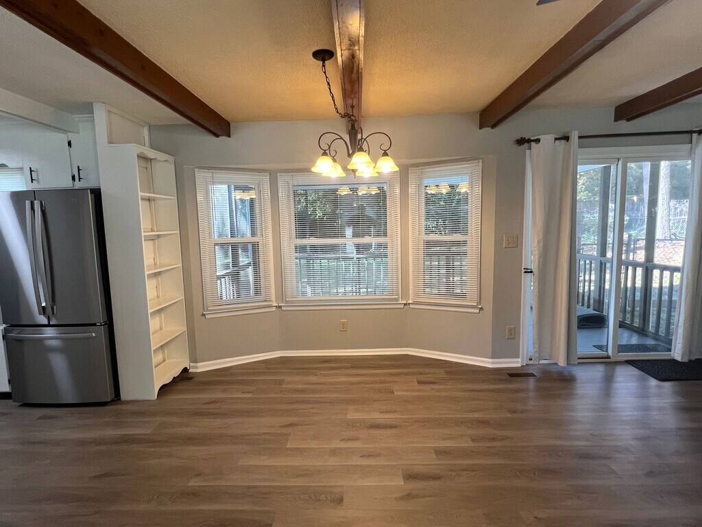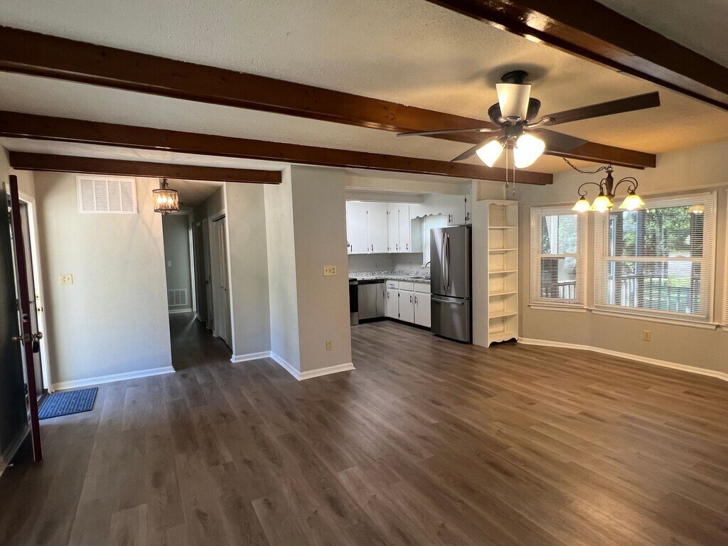 Great location ranch home in Cary! This 3 bedroom home features an open floor plan and large bedrooms. Just updated with LVP flooring, new appliances and white cabinets. Screened in porch that leads to deck. Fenced in large backyard! Plenty of drive way space for parking. LANDSCAPING INCLUDED WITH RENTAL PRICE
