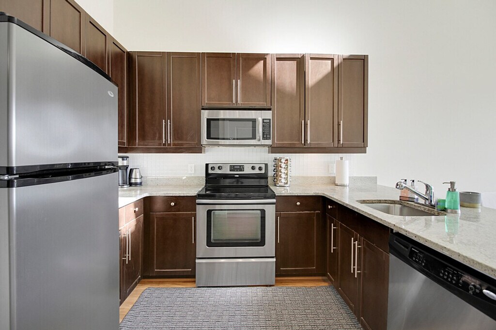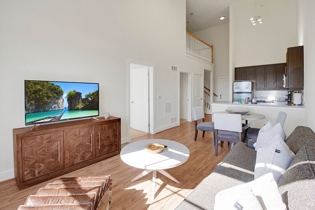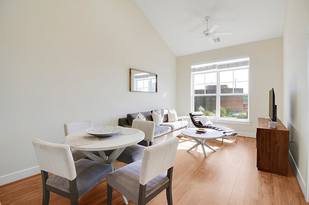 Feel at home in this stylish, open-concept loft near Old Town Alexandria. This apartment features two spacious bedrooms and a full bathroom. This apartment features a full kitchen equipped with stainless steel appliances, cookware, dishware, and essentials like a coffee maker and toaster. A dedicated dining area with a table and chairs is perfect for enjoying meals or getting some work done. The comfortable living space includes a smart TV and high-speed Wi-Fi. An in-unit washer and dryer are available for your laundry needs. Building amenities include a pool, gym, lounge with a pool table, shared work areas, and mail and trash rooms. Parking is available in the building’s garage for an additional fee, and metered street parking is available nearby. Pets are welcome for a fee. Conveniently located near shops, restaurants, and public transportation, this apartment offers easy access to Richmond Hwy and is within walking distance of the Eisenhower metro station, Strategos, Waterfront Park, and Old Town Alexandria. Parking needs to be arranged in advance. A refundable deposit is required if extra keys are needed. [SI]