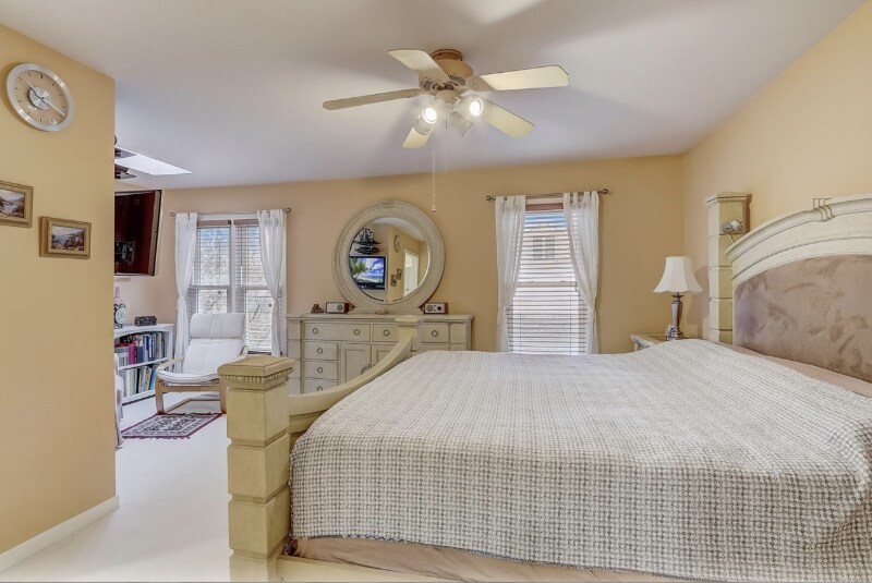 Property Id: 1146997 Chesterfield Community This beautiful 4 bedroom, 2.5 bath end unit townhome offers more than 22000 sq. ft. of living space and has been exceptionally maintained and updated along with genuine Maple flooring and sundrenched living space. This open floor plan home begins with the gorgeous updated gourmet kitchen complete with recessed lighting, striking custom tile backsplash, lots of cabinetry, Quartz counters, and a breakfast area. The kitchen opens to a large dining area which flows into the spacious living room with a wood-burning fireplace. French doors in the living room not only allow a picturesque view of the outside grounds but lead to a large deck perfect for relaxing and entertaining. new carpeted second level ,a large primary suite with a nook sitting area with a skylight, a gorgeous updated primary bathroom with custom tilework, double closets, and a dressing area. Two additional bedrooms, a beautifully updated hall bath, and a laundry area complete the second level.