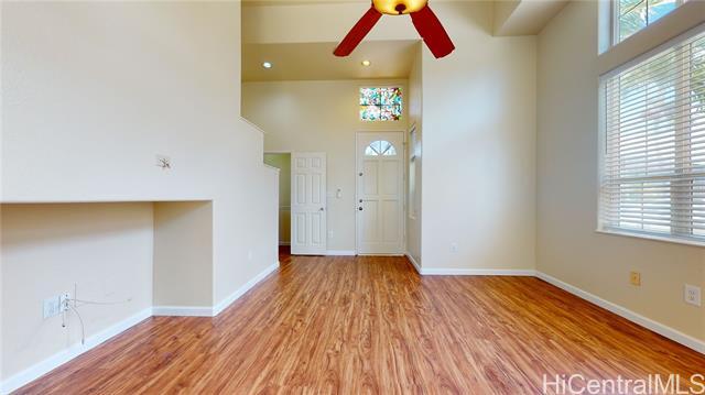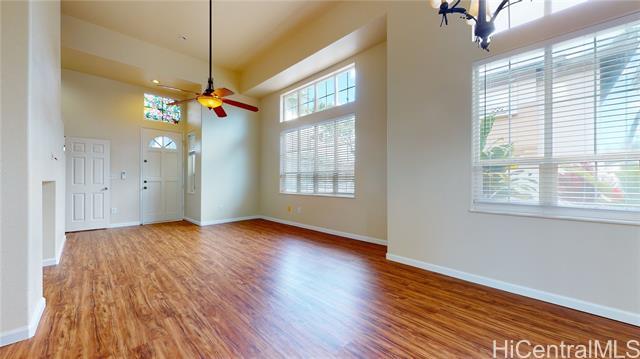 Welcome home to a detached single family home in the Kapolei community of Iwalani. Residents of this community enjoy convenient access to shopping, restaurants, and the fabulous Villages of Kapolei recreation center. This updated home features a master bedroom with bath on the first floor, vaulted ceilings, newly updated kitchen, new split a/c throughout, spacious double car garage opening to Wahinoho Street and not a shared driveway (as most homes in this community do), and gated yard with lanai. Iwalani is part of the master-planned Kapolei community with convenient access to Ka Makana Alii mall, Home Depot, Wal-Mart, CostCo, Safeway, Foodland, movie theatres, water park, golf courses, and more.