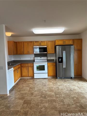 Simple 1br/1ba townhouse in the community of Kealakai at Kapolei. Open living, dining and kitchen layout. Flooring is mixed with carpet in living and viynl in kitchen. Appliances included: dishwasher, disposal, stove/oven, microwave, refrigerator and a laundry center. 2 open assigned parking stalls with guest parking. Conveniently located within a few minutes of numerous restaurants, entertainment places, shopping malls and your large Big Box stores such as Costco, Home Depot, Target, Walmart, etc. Easy access to the freeway. Terms of Lease: 6-month minimum, no smoking, no pets, security deposit (equal to 1 months rent) and first months rent required prior to occupancy, application is required per person over 18 years of age, a credit and background check will be done.