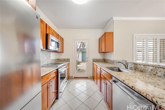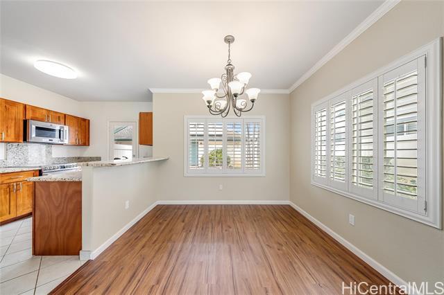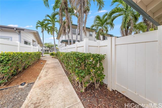 A desirable Ocean Pointe/Ke Aina Kai community of Ewa Beach! This charming 3-bedroom, 2.5-bath townhouse offers comfort, convenience, and energy efficiency with solar power, hardwood flooring, and a brand-new hot water heater and central AC unit. The open floor plan includes a bright living area, updated kitchen with stainless steel appliances, and a dining space that flows seamlessly for gatherings. Upstairs, you'll find spacious bedrooms with ample natural light. The fenced yard and private courtyard provide the perfect outdoor retreat, while the detached 2-car garage offers both parking and storage