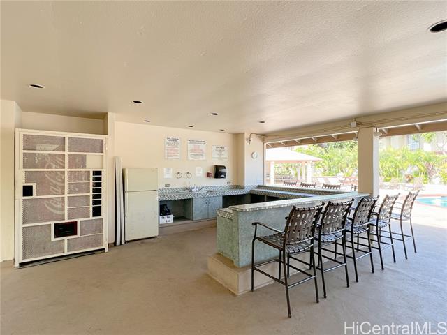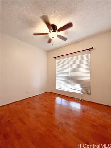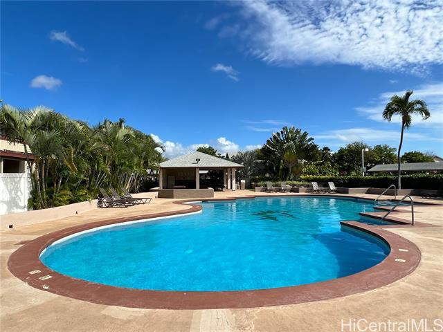 Pet friendly! Partially furnished 874 SQ FT, 2 bed/ 2 bath, ground floor, corner unit at the desirable gated Palm Court in Ewa Gentry. Features: laminated flooring, granite countertops, gas range, dining table & chairs set, A/Cs, ceiling fans, washer & dryer in unit, fenced covered yard. Rent includes water, sewer, trash, 2 assigned parking stalls (1 covered and 1 uncovered), visitors parking, and car wash area. Tenant pays for electricity, cable, internet, and gas. Amenities: community pool, BBQ grills, cabanas, resident manager. Conveniently located near schools, shops, groceries, restaurants, parks, beaches. Under 30 minutes drive to Schofield, Kaneohe Marine Corp Base. No smoking. Renters insurance is required. $25 non-refundable application fee per adult applicant.