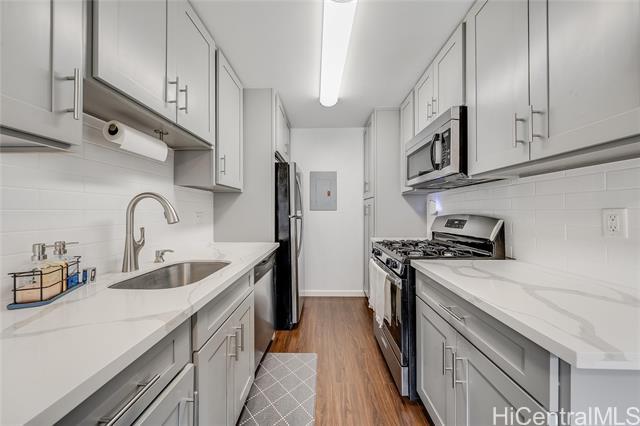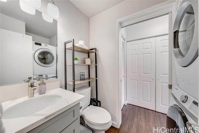 Available January 1, 2026! Charming 2-bedroom, 1.5-bath ground-floor in the desirable Palm Villas community of Ewa Beach. This home features marble countertops, new window A/C units in the living room and master bedroom, and stylish vinyl plank flooring throughout. A full appliance package is included with refrigerator, dishwasher, oven/stove, washer, and dryer. Enjoy community amenities such as a pool and well-kept grounds. Conveniently located just 5 minutes from Ka Makana Ali'i Mall, with restaurants, schools, and parks nearby. Easy commute to Schofield, Wheeler, and Pearl Harbor. Rent includes water, sewer, trash, and pest control, while tenants cover electric, gas, and WiFi/cable. Pet-friendly for 1 dog up to 50 lbs (with approval).