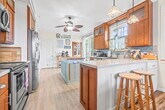 Discover this beautifully upgraded 3-bedroom, 2.5-bathroom home in the highly desirable community of Kapolei. Located on a corner lot at the end of a cul-de-sac, this rare gem offers a fully fenced yard, lush landscaping, and multiple outdoor spaces perfect for entertaining. Fully renovated kitchen with custom cabinetry, large central island, and upgraded appliances Direct access to a side patio—perfect for BBQs Spacious living and dining areas with seamless flow to the backyard patio Custom finishes throughout Central AC & ceiling fans Convenient half bath downstairs Primary suite featuring a walk-in closet, second closet, and a fully remodeled ensuite bath Parking: 3+ spaces including garage, driveway, and street parking Extras: Washer/dryer in unit, PV system , automatic sprinkler system, storage areas Community Amenities: Enjoy access to the Villages of Kapolei Recreation Center—featuring multiple pools, playgrounds, and more. Prime Location: Close to Ka Makana Ali'i Mall, the Kroc Center, UH West O'ahu, and with quick access to the H1 Freeway.