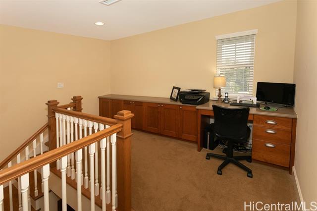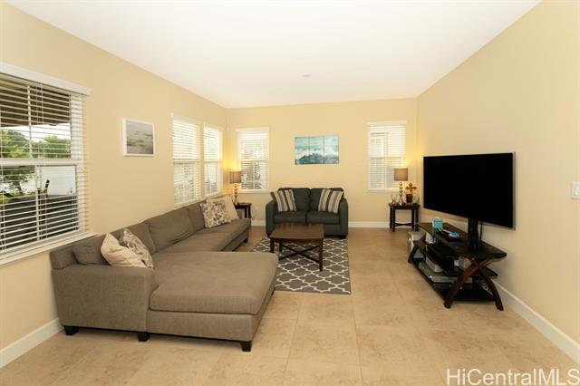 Beautiful 4 BR, 3 Bath home in the Award Winning Community of Ka Makana at Hoakalei. Photo Voltaic (PV) Solar System and Solar Hot Water for reduction in electric bills. Bedroom & full bathroom located on main level along with den/office/study with French doors. Beautiful tile flooring on the first floor. Primary bedroom lanai has great views of the golf course. Upstairs features tech area & a spacious loft. Stainless steel appliances, washer & dryer, central AC, ceiling fans, fully fenced yard, sprinkler system, 2-car garage with large driveway for additional parking. RENT INCLUDES basic cable/internet, yard maintenance, trash pickup and access to the community swimming pool, tennis court and fitness center. Community offers walking/jogging/bike paths, playground and rec areas. Just minutes from shopping, beaches, schools, restaurants, movie theaters, Ka Makana Alii mall. Within walking distance of the NEW WAI KAI, the nine-acre waterfront recreation and lifestyle venue, which includes LINEUP at WAIKAI, one of the largest deep-water standing surf waves, lagoon for water sports, restaurants and other venues and much more. Renter's Insurance required, pet subject to owner approval.