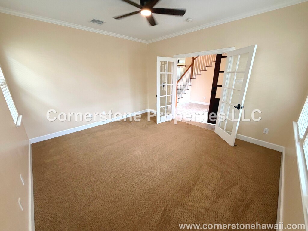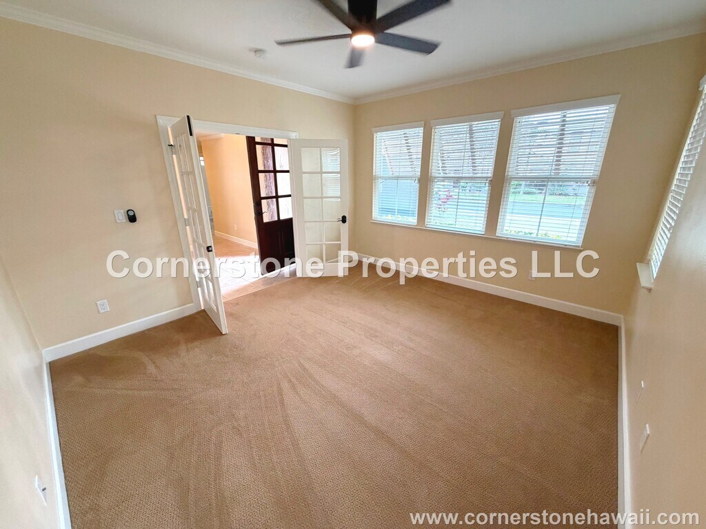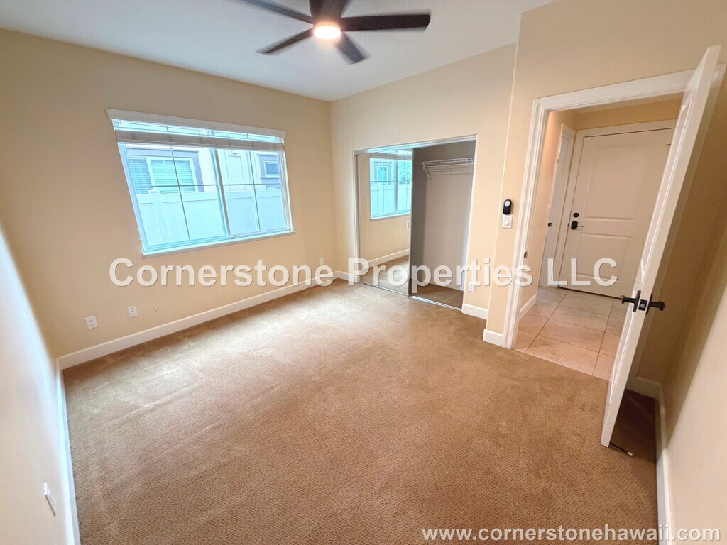 Enjoy living in this partially furnished, 4 bedroom, 3 bathroom, 4 parking single family home in the Ka Makana at Hoakalei neighborhood in Ewa Beach. Additional rooms include an office, laundry room, and large landing space with desk & storage built-ins. Primary bedroom features two walk-in closets! Near bus lines, schools, and shopping centers. VIRTUAL TOUR: PROPERTY DETAILS: - Unit Type: Single Family Home, Two-Story - Approx. Square Footage: 2661 - Year Built: 2014 - Bedrooms: 4 - Bathrooms: 3 - Parking: 4 (2 car garage, 2 car driveway) - Office UNIT FEATURES: - Full Size Washer/Dryer - Dishwasher - Disposal - Refrigerator with Ice Maker - Electric Stove/Oven - Built-in Microwave - Range Hood - Central AC - 7 Ceiling Fans (Living Room and Bedrooms) - Kitchen Island - Kitchen Pantry - Solar PV System & Solar Water Heater - Fenced Yard - Covered Lanai off upstairs landing - Covered Patio in backyard - Two walk-in Closets in Primary Bedroom - Window Coverings: Horizontal Blinds - Flooring: Carpet and Ceramic UTILITIES: - Included: Twice a month yard service - Tenant Responsibility: Electricity, Cable, Water/Sewer, Phone, Internet, Pest, Alarm, Gas, (if applicable) and maintaining yard between services. - Security alarm system available for tenant use. Tenant would be responsible for any monitoring fees (optional). AMENITIES: - Access to Kamakana Swim Club (KMCA) upon request LEASE TERMS: - No smoking - Pets negotiable to 2 max - Available Date: NOW - Lease Length: 1 Year - Professional cleaning required upon move out by an approved vendor of Cornerstone Properties. - Renter's insurance required: with $300,000 liability coverage and Cornerstone Properties listed as an additional interest. - All adults 18 years old and older must apply. - Application fee: $35 (Non-refundable) Visit to apply. To inquire, email: PROPERTY CODE: 1254GIA Cornerstone Properties, LLC: RB-20789 *DISCLAIMER: If approved with a pet, at the time of signing a lease, a pet deposit will be due (up to one month's rent) along with the security deposit. Cornerstone Properties is not responsible for any inaccuracies or misprints on this website or other subsequent websites and reserves the right to make changes without notice. Our rental units are considered available until an applicant is approved, the security deposit is paid, and the lease is executed. Please be advised that although a property is listed as available, it could be in the process of a lease signing or may have just been rented. Please call our office to inquire. All availability dates are approximate and not guaranteed