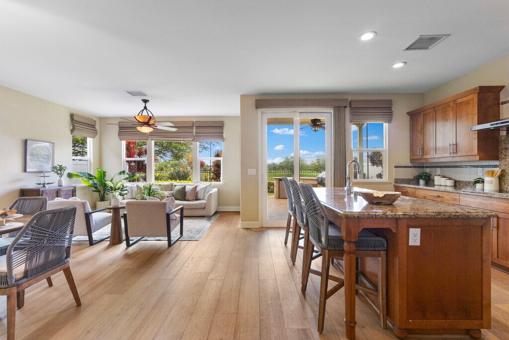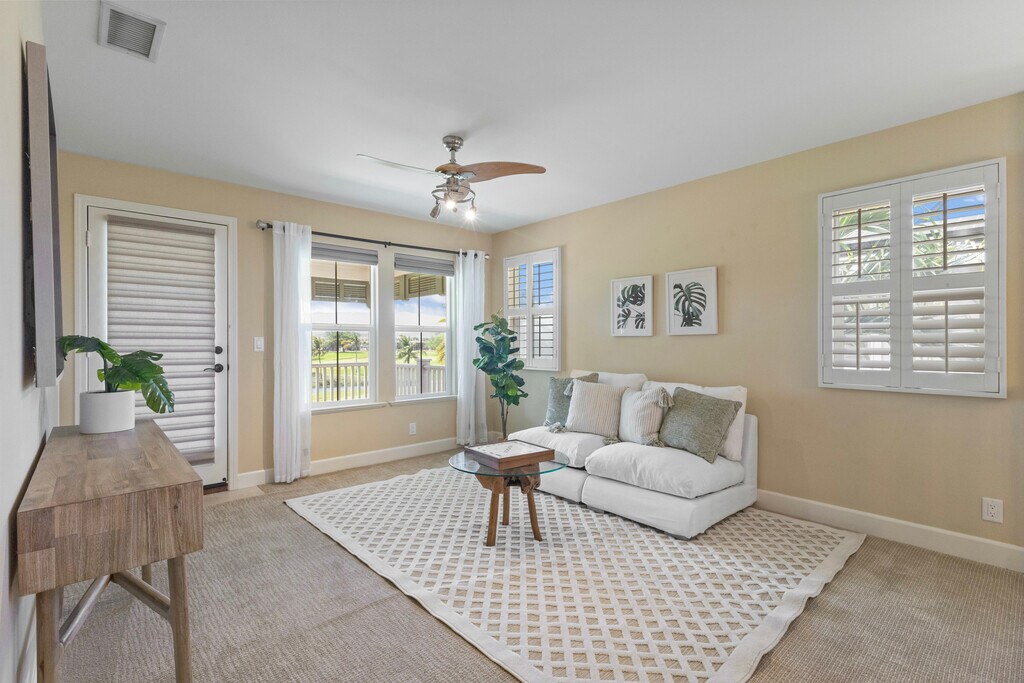 ow is your chance call to this island oasis home. Overlooking the 14th fairway of Hoakalei Country Club, this stunning 4 bed, 3 bath home offers an unmatched blend of comfort and island elegance. Its thoughtful design creates a seamless flow between indoor and outdoor living. The heart of the home is a modern, open-concept kitchen outfitted with granite countertops, stainless steel appliances and custom cabinetry. Just outside, the covered lanai leads to lush green space and a patio, featuring built in gas grills. Whether you're preparing a meal or entertaining friends, this space is as functional as it is beautiful. The bedroom and full bath on the first floor provides convenience and ease of accessibility for guests or extended family. A versatile loft upstairs offers multiple use options — perfect for a home office, playroom, or media space. The primary suite boasts a private balcony with sweeping views of the golf course and Waianae mountain range just across the water, bringing the resort lifestyle right to your backyard.