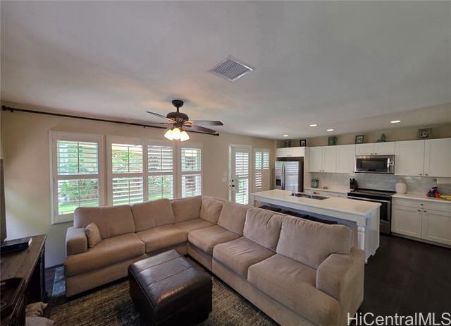 Beautifully maintained 4-bedroom, 3-bath home located in the desirable Kuapapa at Hoakalei community. This home features developer upgrades, including hardwood flooring, plantation shutters, professionally landscaped front and back yards with sprinkler system, built-in desk area, central AC, stainless steel kitchen appliances, solar water heater, and a welcoming front porch. Convenient floor plan includes one bedroom and full bathroom on the first floor. A wonderful rental opportunity in one of Ewa Beach’s sought-after neighborhoods. Internet and basic Cable TV included. Lease to begin on June 1, 2026.