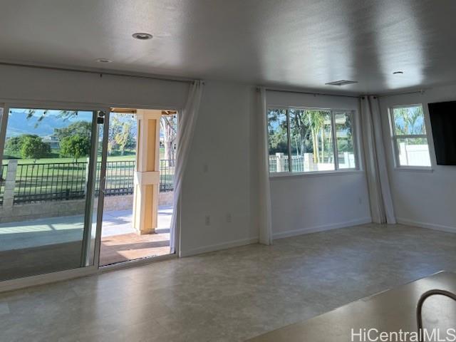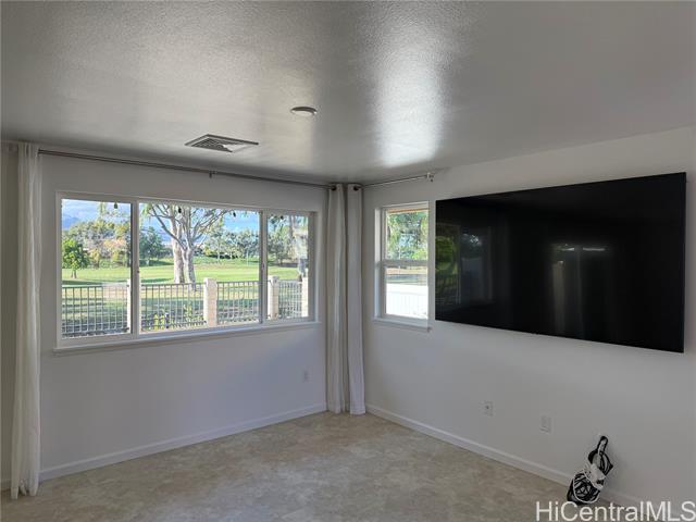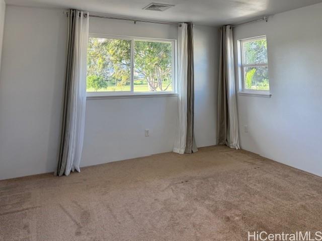 Beautiful HOme with GOLF COURSE VIEW! Enjoy the peaceful and quiet neighborhood with golf course and mountain view. This move-in ready home is located in a cul-de-sac. It has approximately 27-30 solar panels giving you the comfort in running your central Ac without worry of huge electric bill. Lush green views can be enjoyed by the open floor plan with lots of natural lights or from relaxing in your covered lanai. Spacious kitchen equipped with stainless steel appliances and granite countertop. Vinyl floor throughout downstairs and carpet upstairs. Primary room has walk-in closet and primary bath with dual sink. Nice and clean garage with built-in shelves and gym equipment. Minutes away from shops, like Kamakana Alii Mall, restaurants, schools, parks and easy access to the freeway. Short drive to beaches and the resor amenities at Ko'olina