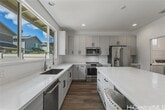 Welcome to Makamae by Gentry, a stunning, brand-new single-family home featuring the highly desired Plan 4 layout with a bedroom and full bathroom on the ground floor. This spacious residence offers modern design, open-concept living, and a thoughtfully planned floor plan that’s perfect for today’s lifestyle. Barely lived in, the home feels fresh and move-in ready, with sleek finishes, stainless steel appliances, central AC, and a solar water heater for energy efficiency. Enjoy a private landscaped yard, attached 2-car garage, and community amenities nearby. Conveniently located close to shopping, schools, parks, and freeway access – a rare opportunity to rent a like-new home in this sought-after neighborhood! Tenant pays all utilities, and application fee applies