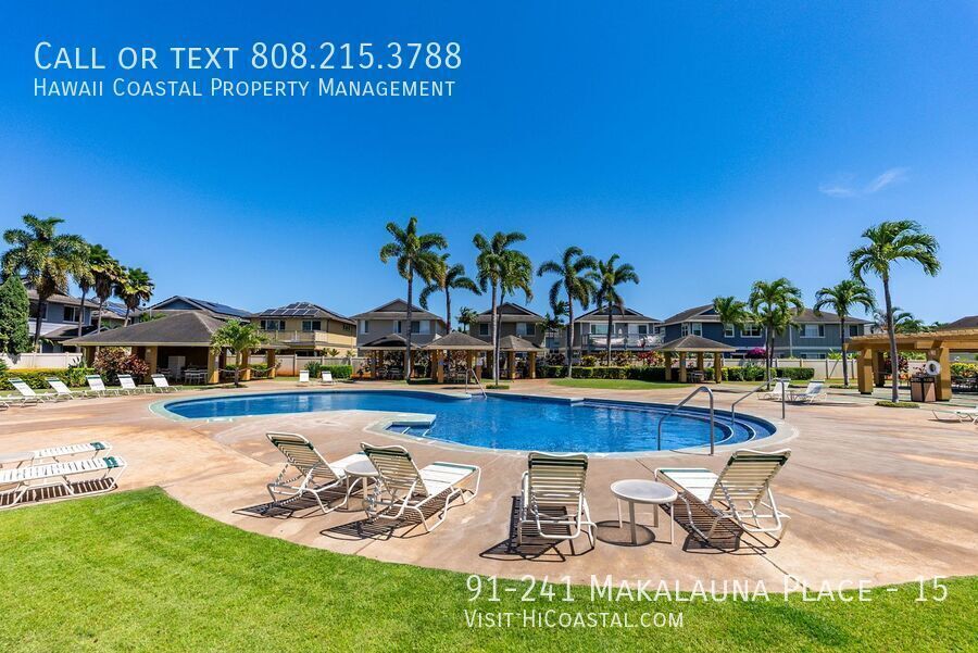 Live and Play in Ewa Beach, close to it all in West Oahu in this updated, pet-friendly, 3 Bed, 2.5 Bath single-family home, with new kitchen and appliances, renovated bathrooms with quality finishes: quartz countertops, Split-AC's for Climate Control and Luxury Vinyl Flooring. Generous 2 car garage, with a small maintenance-free turf yard is perfect for enjoying the Hawaii Weather with a beautiful large Star-of-India providing shade in the corner. The community pool, a 3 minute walk down Kamailio St, a playground for the kids, and of course the manicured open spaces of Ewa Beach with nearby Hoalauna Community Park a short 5 minute walk away, and 4 minute drive to Ewa Town Center that features Foodland with their famous Poke bar, and multiple restaurants or the Safeway Shopping Center that features a beautiful Safeway, Walgreens, Ross, Petco, Buffalo Wild Wings and more. In addition to the pool in the community center, there is also the new Wai Kai Artificial Surf Wave Pool 3 miles away that features unlimited surfing, Ocean and Lagoon Views, a The Lookout Bar and Grill, Fine-Dining Restaurants and shops as well as a Community Night Market on Thursday nights. And of course, can't forget, you are surrounded by world-class public and private Golf Courses. Ewa Beach is an excellent place for Hawaiian family living, and this home will be an excellent choice for a family on a budget with small pets and kids. 2 Car Garage Community Barbecue Community Pool Pet Friendly Pool Service Refuse Sewer