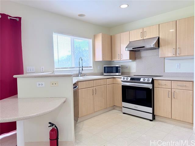 This move in ready home in Kapolei Knolls. Located in a QUIET, excellent, wonderful family friendly neighborhood. Cathedral ceiling, with a private little loft upstairs and a balcony. Centralized AC, all 4 bedrooms have ceiling fan for additional savings in energy costs. One bedroom and 1 full bath conveniently located downstairs. With an upstairs loft perfect for family entertainment. Large backyard perfect for entertaining. Includes two 220V outlets for electric vehicle charging, one specifically for a Tesla mobile charger. With fenced; few steps away to private park. Plenty of parking spaces. Private entrance, granite counters, complete appliances, garden tub with separate shower, and washer/dryer, tons of storage, and more. And just when you think it can't get any better, located in Kapolei (Oahu's second city) and just few minutes from the freeway, top rated schools in Kapolei Knolls, shopping malls, theatre, golf course, hospitals and much more.