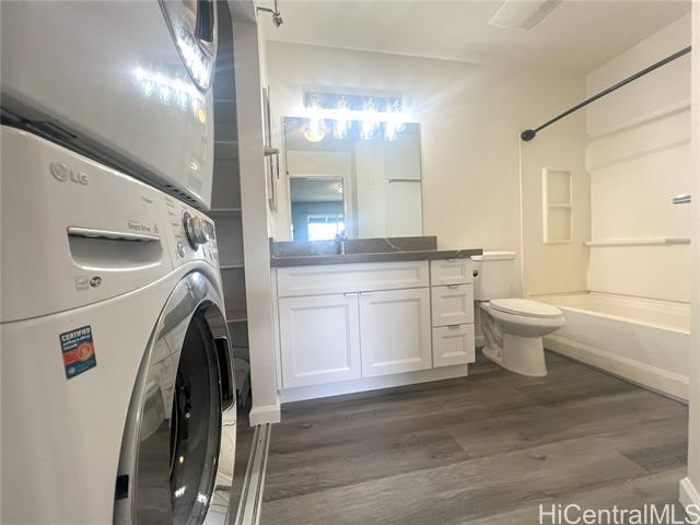 Don't miss out on this 1 bedroom 1 bath townhouse that was remodeled in 2024 with Brand new kitchen cabinets, brand new quartz counter tops, new bathroom vanity and counter, new carpet in living and bedroom, new vinyl plank in kitchen and bathroom, new lighting in kitchen, bedroom and bathroom, AC in living room and bedroom, outside lanai and extra storage. This unit is the second floor and comes with one parking. Complex has a swimming pool and rec area for tenant's use. It is very conveniently located to park, Foodland complex with coffee shop and multiple restaurants. Property has gas stove and water heater, Comes with all appliances and washer and dryer in unit. Tenant pays for gas, electric, cable/internet (optional) $20 application fee for applicants 18 years and older. Rental insurance is required. No pets allowed. Call Shannon at . Available beginning of January for occupancy