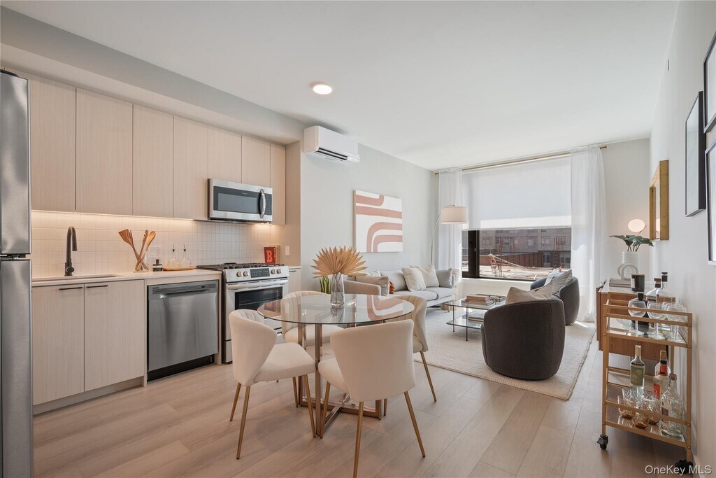 Modern One-Bedroom Living at The 88 – Where Comfort and Style Meet Welcome to The 88,Jamaica’s premier luxury rental community where design,comfort,and convenience come together beautifully. Perfectly located at 153-10 88th Avenue,this full-service building offers a lifestyle that feels elevated,effortless,and connected. This one-bedroom apartment is spacious,bright,and thoughtfully designed for modern living. Oversized windows and high ceilings fill the home with natural light while the open-concept layout creates an easy flow between living,dining,and kitchen spaces. The chef-inspired kitchen features sleek stainless-steel appliances,white quartz countertops,soft-close cabinetry,and a stylish subway-tile backsplash that adds a touch of modern sophistication. The bedroom offers generous closet space and a relaxing retreat at the end of the day. Each residence includes central air,and many feature in-unit washer/dryer for ultimate convenience. At The 88,your home extends far beyond your front door. Enjoy more than 25 000 square feet of resort-style amenities designed to help you live,work,and play all in one place. Start your morning in the state-of-the-art fitness center or yoga studio. Grab a coffee and catch up on emails in the co-working lounge with private video booths,or unwind in the media room,library lounge,or game and billiards room. Host friends in the private dining and party room or the communal kitchen built for entertaining. Step outside into the Infinity Garden,a peaceful 10 000-square-foot landscaped courtyard perfect for a morning stretch or an evening glass of wine. Head up to one of the two rooftop decks and take in stunning skyline views while enjoying outdoor seating,BBQ grills,and lounge areas designed for connection and calm. Residents also enjoy every modern convenience,including: • 24-hour attended lobby and concierge service • Indoor parking garage with EV chargers • Landscaped rooftop and courtyard • Pet spa and pet-friendly living • Laundry room and on-site storage units • Bike storage and package room • Secure key-fob access throughout Commuting is a breeze. The Parsons Blvd F train is one block away,with the E,J,M lines and LIRR Jamaica Station close by. JFK Airport and Manhattan are both less than 25 minutes away,giving you unmatched access to work,travel,and play. Outside your door,discover a neighborhood full of energy and convenience. Enjoy Rufus King Park,local cafés,international dining,shopping,and cultural attractions—all within walking distance. If you’ve been searching for a one-bedroom that blends space,sophistication,and everyday comfort,you’ve found it. At The 88,luxury meets lifestyle,and coming home feels like the best part of your day. Studios,One-Bedroom & Two Bedrooms Now Leasing 153-10 88th Avenue,Jamaica,NY 11432 Schedule your private showing today and experience why so many are calling The 88 home. Based on information submitted to the MLS GRID as of [see last changed date above]. All data is obtained from various sources and may not have been verified by broker or MLS GRID. Supplied Open House Information is subject to change without notice. All information should be independently reviewed and verified for accuracy. Properties may or may not be listed by the office/agent presenting the information. Some IDX listings have been excluded from this website. Prices displayed on all Sold listings are the Last Known Listing Price and may not be the actual selling price.