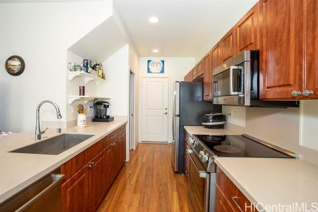 Available June 1, 2026. Beautiful 4 bedroom, 2.5 bathroom Single Family Home in the Community of Parkside. SOLAR PANELS for reduced electric bills. This home features an open floor plan, laminate and premium vinyl flooring, spacious kitchen, stainless steel appliances, large walk-in pantry, laminate flooring downstairs, ceiling fans, Central AC, Solar water heater, private fenced-in backyard, automatic sprinkler system, 2-car garage with driveway for additional parking. Great location, overlooking green space and golf course from the back yard with no neighbors behind the house. Just steps away from community swimming pool and guest parking. RENT INCLUDES water, sewer, trash, HOA maintenance fees, access to community swimming pool. Pet negotiable (fee), subject to owner's approval. Close to shopping, schools, restaurants, beaches, parks & KaMakana Ali'i shopping mall. Renter's Insurance required. No smoking of any kind allowed. Washer/dryer hookups in garage, washer/dryer NOT included.