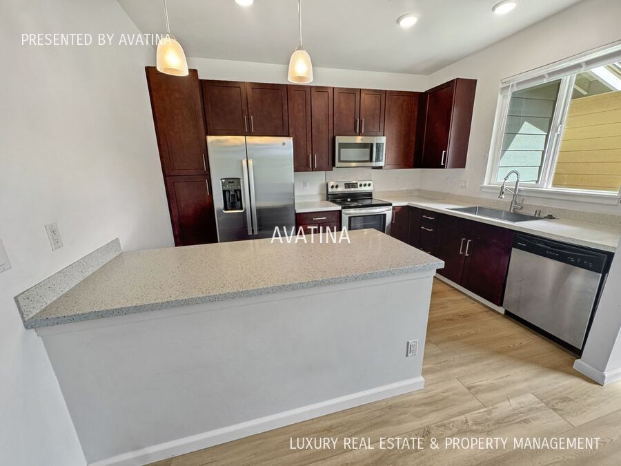 Welcome to HOOPILI-HALOA! Beautiful two-story pet friendly townhome with AC features 3 beds, 2.5 baths! Entering past your fenced lawn and covered front lanai, you will find the spacious living/dining area with vinyl plank flooring. The Chef's kitchen has shaker cabinets, quartz countertops and stainless appliances plus there's a downstairs half bathroom. Upstairs the Primary bedroom has an ensuite bathroom, plenty of closet space plus there are two more guest bedrooms bedrooms that share a full hall bathroom plus along with a full size washer dryer. Chill on the front covered lanai or in the small fenced/gated backyard. There's also a 1 car garage with a 2nd parking next to it. Ho’opili offers community pool, BBQ area, & recreation room for endless entertainment. Nearby is the Beach, newer Ka Makana Alii Mall, restaurants, COSTCO, Home Depot, and so much more! YouTube Tour: Just Listed, Coming Soon! 3D Virtual Tour: Just Listed, Coming Soon! You can view all of the properties and schedule showings at: Or call: (8O8) 645-449O Address: 91-960 Iwikuamoo Street #404 1 yr lease, Rent = 3,995. a month plus $15.50 Liability to Landlord Insurance & credit reporting fee, Security Deposit 3,995. All rents & security deposits are due at signing. Liability to Landlord and Renters Insurance required. $50.00 application fee, $100. one-time onboarding fee with approved application. Monthly Pet Fee $100 plus $500 pet security deposit per pet. Tenant pays all utilities. Presented by Avatina Community Center Community Pool/Cabana Dog Park Tenant Pays All Utilites. Walking/Jogging Path