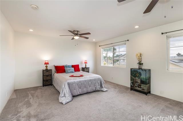 Welcome to Golf Course Living. Nestled in Ewa Gentry’s Sun Terra South, this 5-Bedroom, 3-Bath, nearly 2,000 square foot home offers flexible living with a FULL Bedroom and FULL Bathroom with a TUB Downstairs. This amazing home also has a Private Owner’s Suite Upstairs with a Walk-In Closet and Double Vanity Sinks and Cabinetry. Two separate Living Rooms invite relaxation and entertainment, while the Dining Room opens into a Kitchen with a Walk-In Pantry. Ceiling fans and AC breeze will keep the home cool throughout. 2 CAR Garage (with a Water Softening System inside) plus 2 extra parking spaces, means plenty of private parking for your family and friends. They will also enjoy your spacious backyard overlooking the 4TH HOLE on the Coral Creek Golf Course. This is what island living is all about. Please make an appointment, if you are currently ON ISLAND and looking for a home NOW. This home is VACANT and looking for occupancy in April. Alooooha!