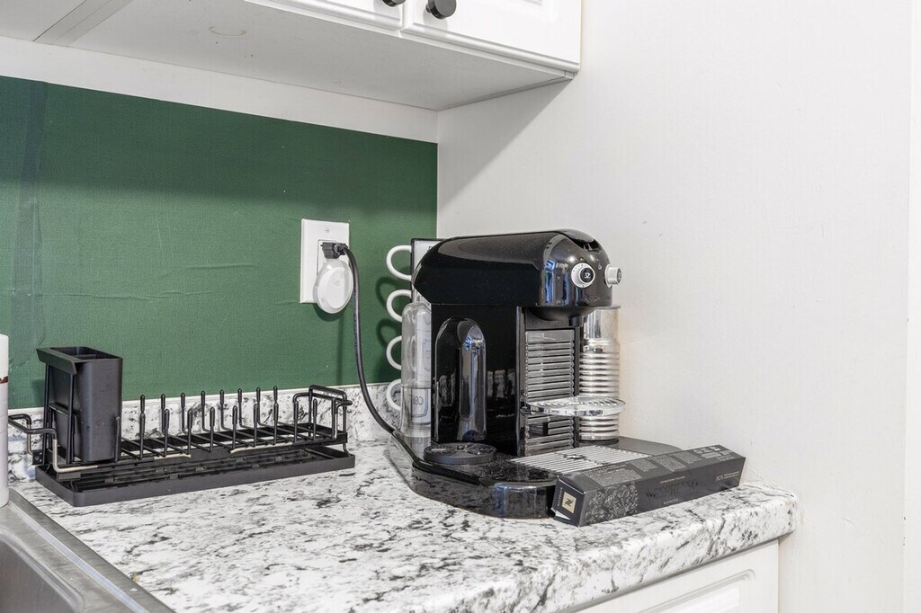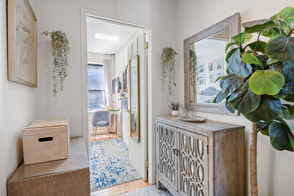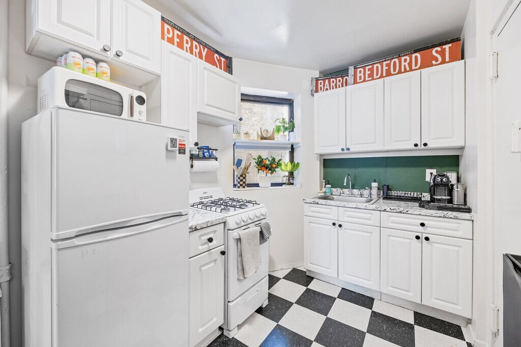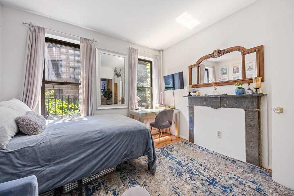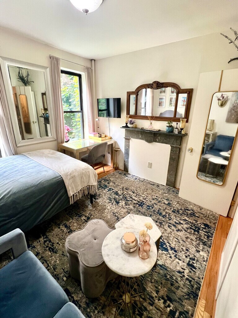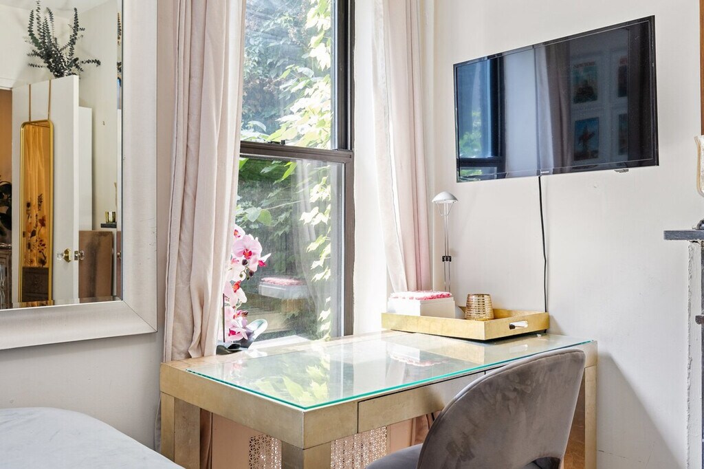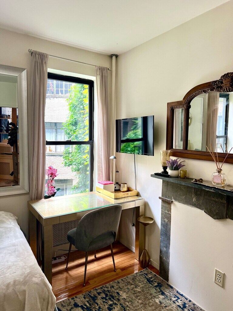 Feel at home in this stylish and quiet 1-bedroom apartment located on the second floor of a typical West Village walk-up building, just one flight of stairs up. Nestled in one of the most sought-after corners in Downtown Manhattan, this apartment offers a tranquil escape with views of a serene backyard wrapped in ivy and greenery year-round. Enjoy your private little balcony on the fire escape overlooking the urban garden. The apartment features a fully equipped separate eat-in kitchen complete with a Nespresso machine, milk frother, and Magic Bullet, along with pots and pans for home cooking. There's a separate dressing area between the kitchen and the main living and sleeping space, which includes a full-size bed and a loveseat. The apartment also boasts great storage options with a double closet, additional overhead storage, two dressers, a separate linens tower, and under-bed storage ideal for suitcases and seasonal wardrobe swaps. A decorative fireplace adds to the charm. Located steps away from the neighborhood's best eateries, including the Little Awl right outside the apartment, and just two blocks from Hudson River Park. A short stroll will take you to Soho, the Meatpacking District, and the High Line, which leads directly to Hudson Yards. Simplified Cleaner laundry service is conveniently less than a two-minute walk away, offering free pick-up and drop-off service to and from the apartment. The apartment feels like a zen oasis in the best part of the West Village, offering a peaceful retreat amidst the vibrant city life. Includes a work-from-home set-up with a 48-inch West Elm desk and chair overlooking the ivy-wrapped backyard, providing a peaceful work environment.