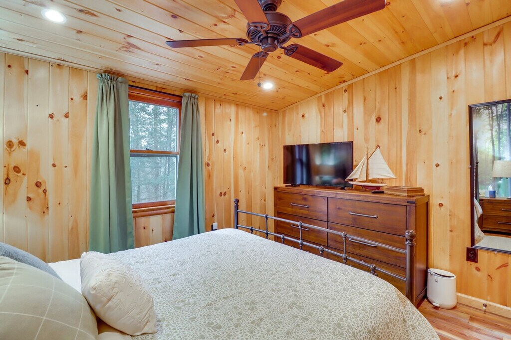 The advertised rate of $7,460/month is the lowest available price, based on a 1 month(s) and 2 day(s) stay with a move-in date of February 25, 2026. Rates vary depending on the duration of stay, season, and other parameters. For exact pricing and additional pricing components, please visit our website and enter your desired move-in and move-out dates. The rate is applicable when billed upfront; it can be higher if billed in multiple payments. Feel at home in this charming Pocono cabin, perfect for all-season adventures. This single-story cabin requires 3 steps to enter and offers 2 bedrooms and 1 bathroom. This cabin features 3 Smart TVs, a gas fireplace, board games, books, and a dining table. The kitchen is equipped with a stove/oven, refrigerator, microwave, drip coffee maker (coffee and filters provided), cooking basics, dishware/flatware, trash bags, and paper towels. Other amenities include free Wi-Fi, electric heating, a window A/C unit, 3 fans, linens/towels, beach towels, a hair dryer, and a washer/dryer with laundry detergent, and an iron/board. Enjoy outdoor living on the deck with a gas grill (propane provided) and dining area, or gather around the wood-burning fire pit (bring your own wood). Access to Indian Rocks' community amenities, including an outdoor pool, tennis/pickleball courts, a half basketball court, a fitness center, a playground, a lake with a beach, and jet ski rentals, is available for a $25 fee paid to the homeowner. Pets are welcome with a fee of $50. All-season adventures await! Glide down the slopes at Camelback Ski Resort, hike through Promised Land State Park, or paddle on the nearby Lake Wallenpaupack. A required community agreement form is to be filled out before arriving. No events, parties, or large gatherings are permitted. Kayak and paddleboard are provided. [SI]