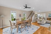 Fully furnished Victorian available for MONTHLY WINTER RENTAL for April and May 2026,ideally located just five blocks from the beach and overlooking a quiet park. This fully renovated 3BR,2.5BA home combines historic charm with modern updates. The first floor offers a bright open living and dining area with gas fireplace and custom built-ins,along with an updated eat-in kitchen featuring quartz countertops,shaker cabinetry,stainless steel appliances,sea-glass backsplash,and center island. A private courtyard off the kitchen provides additional outdoor space for grilling or storage. The second floor includes three spacious bedrooms,a sleek hall bath,laundry,and a primary suite with vaulted ceilings and a custom en suite bath with tiled walk-in shower. Two south-facing porches,one wrapping the second floor,create inviting outdoor living areas perfect for enjoying ocean breezes. With a full basement for storage and a turnkey furnished setup,this home offers seasonal comfort just blocks from the beach,park,and local amenities.