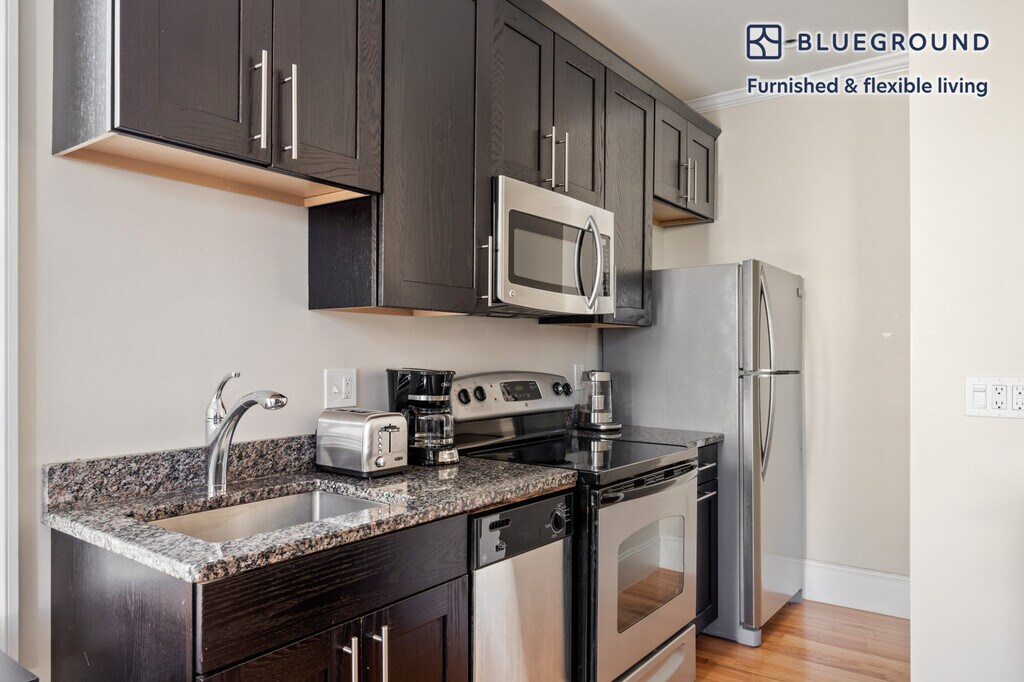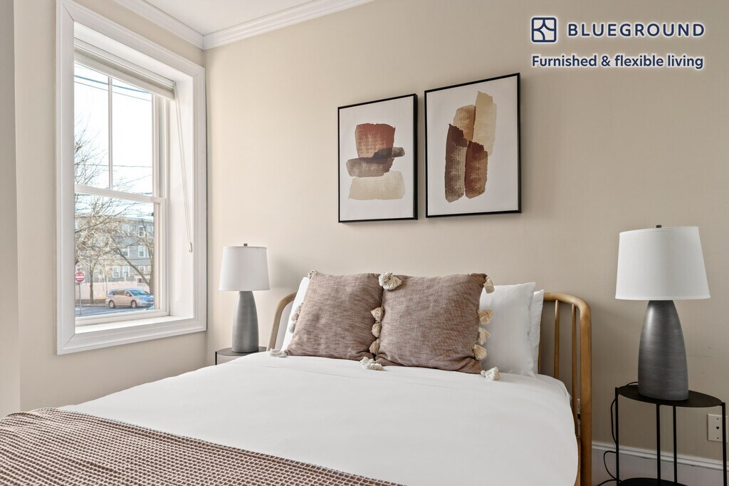 Feel at home wherever you choose to live with Blueground. You’ll love this sophisticated East Somerville furnished one bedroom apartment with its modern decor, fully equipped kitchen, and cheery living room. Ideally located, you’re close to all the best that Somerville has to offer! (ID #BOS802) The advertised rate of $3,030/month is the lowest available price, based on a 5 month(s) stay with a move-in date of August 1, 2026. If you’re looking for a 1-year stay, the rate is $3,130/month. Rates vary depending on the duration of stay, season, and other parameters. For exact pricing and additional pricing components, please visit our website and enter your desired move-in and move-out dates. The rate is applicable when billed upfront; it can be higher if billed in multiple payments. Brokers are welcome to reach out. Were you looking for an unfurnished lease? Try Blueground instead and upgrade from unfurnished to furnished living: - Furnished at rates comparable to unfurnished - No setup or furniture costs - save thousands - Move-in ready - save time, just bring your suitcase Designed with you in mind Thoughtfully designed with bespoke finishes, modern furnishings, and a fully equipped kitchen, you’ll enjoy that “I’m home” feeling with this Blueground apartment. Whether you’re lounging in your stylish living room streaming the latest and greatest entertainment on the smart TV or premium wireless speaker, or getting some well-earned rest on the superior quality mattress with luxury linens, you’ll fall in love with everything this East Somerville apartment has to offer. Sleeping arrangements Queen Bed, 63in/160cm Amenities Building amenities unique to this one bedroom apartment include an on-site: - Dryer in building - Washing machine in building Arrival and ongoing support The entire apartment is yours to enjoy! Throughout your stay, you’ll have access to our Client Experience team through the Blueground App. You can schedule additional cleanings, submit maintenance requests, and view our neighborhood recommendations with just a few taps. We’ll share all details upon confirmation of your stay. Other things to note This Blueground apartment has flexible lease options, allowing you to book it for one month, a year, or more. Please keep in mind that this is a walk up building. We take great pride in ensuring every photo displayed is shot in our own units with our actual furnishings. That said, we regularly refresh our decor and furniture arrangement, which may differ from what’s pictured. [SI]