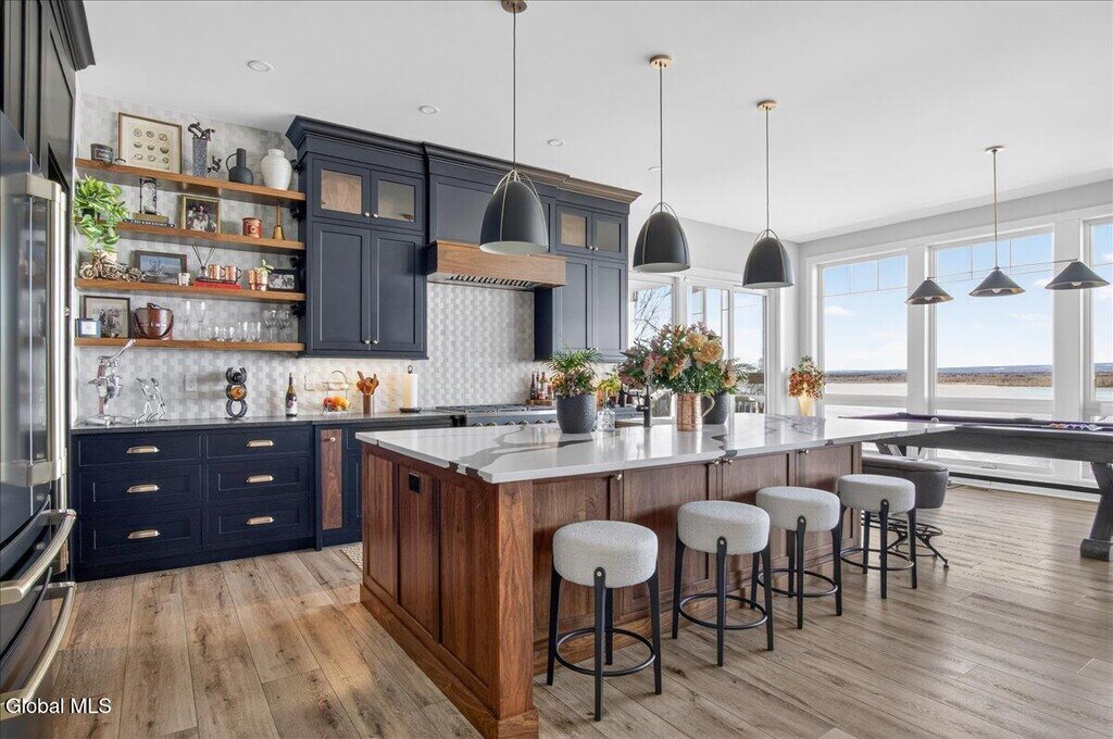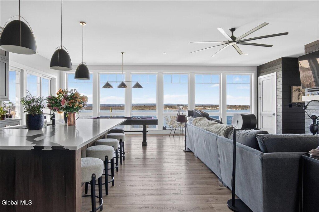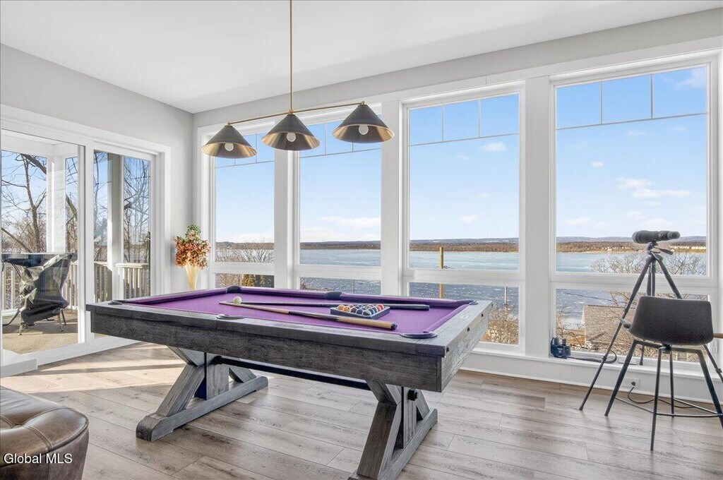 Experience modern luxury at its finest in this newly built,architecturally striking residence overlooking Saratoga Lake. Designed for those who appreciate refined living and bold design,this 3-level,4-bedroom,3.5-bath home delivers extraordinary craftsmanship,seamless flow,and elevated style throughout. An in-home elevator connects all levels with ease,while extraordinary finishes—from custom millwork and designer lighting to premium materials and sleek textures—create a sophisticated yet inviting atmosphere. Expansive windows frame stunning lake views,flooding the home with natural light and blurring the line between indoors and out. The open-concept living spaces are perfect for entertaining or quiet luxury living,while the private bedroom suites offer comfort,privacy,and spa-inspired baths. A two-car garage located beneath the home adds convenience without compromising the clean architectural lines. Ideally located just 10-13 minutes from downtown Saratoga Springs,this home places you moments from world-class dining,shopping,and culture,as well as the iconic Saratoga Race Course and Broadway's vibrant arts scene. This is not just a home—it's a statement of modern elegance,lifestyle,and location,set in one of Saratoga's most coveted lake view settings. MLS ID 202610809