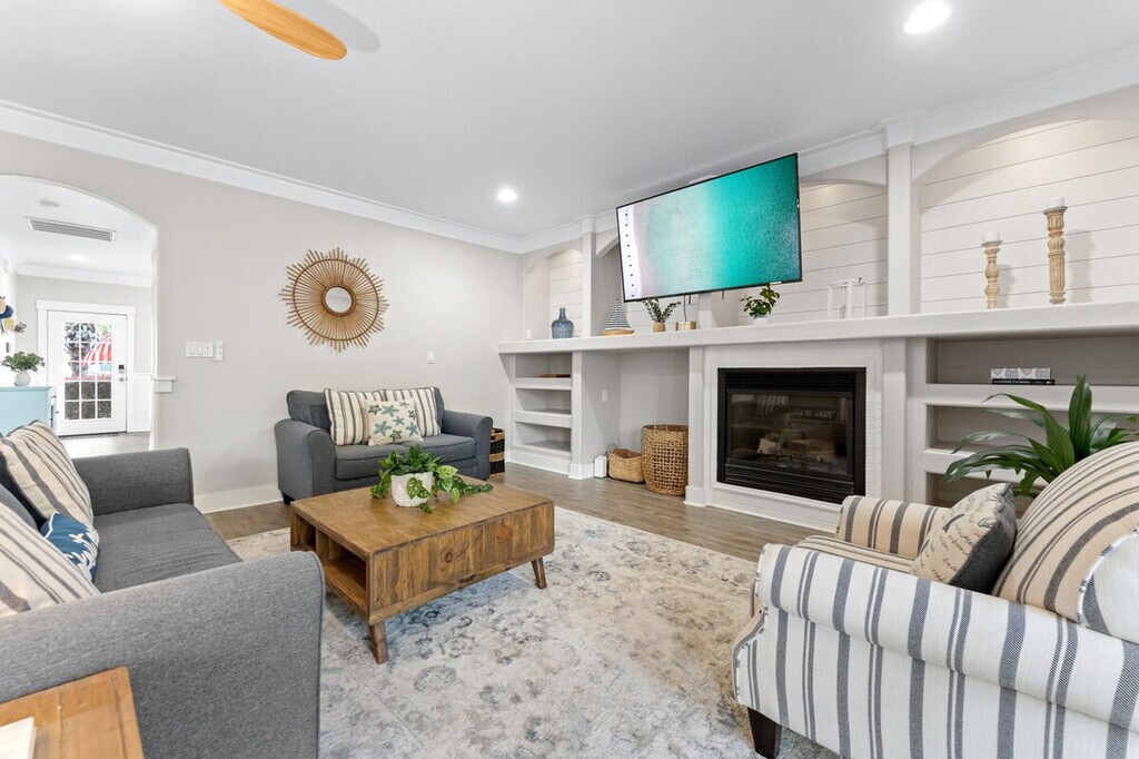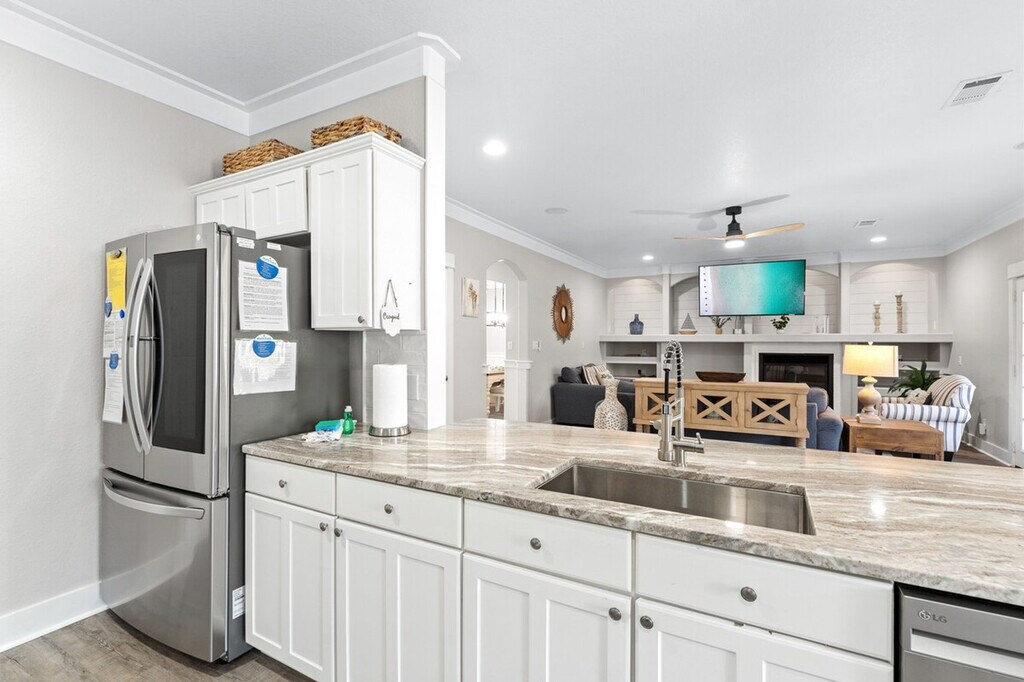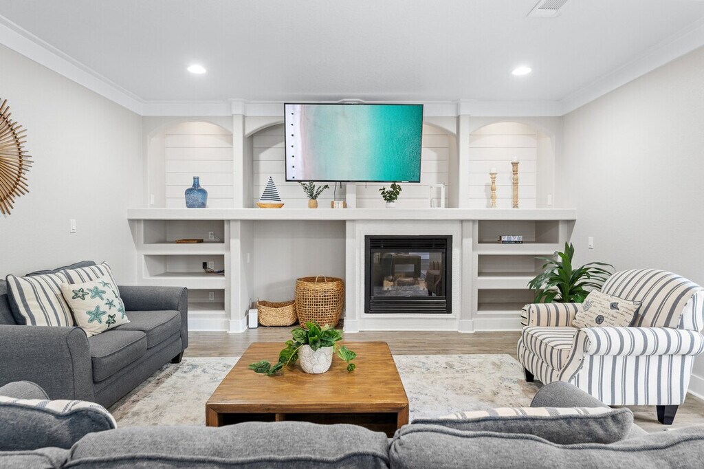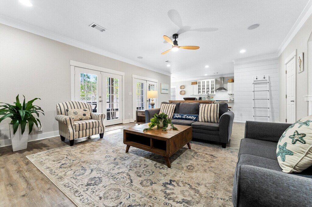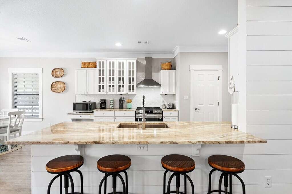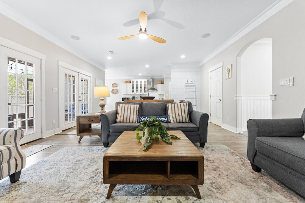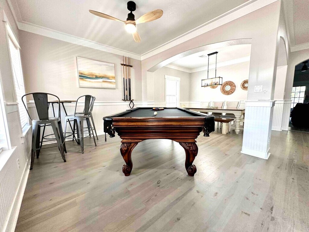 Welcome to Coastal 91, a beautiful farmhouse meets beach house in Miramar Beach! This lovely home with five bedrooms and three and a half bathrooms offers a wonderful combination of comfort and convenience. You'll love having a free golf cart for easy beach access, plus two community pools and a game of pool inside. Situated near shopping, dining, and plenty of family fun, Coastal 91 is the perfect place to make lasting memories. Our home is located in the gated community of Emerald Waters Village, offering a safe and peaceful setting for your stay. Enjoy easy arrival to this spacious two-story home with parking for up to 3 vehicles, plus a free six-passenger golf cart for effortless trips to the beach or nearby attractions. Community perks include two pools and gated beach access right at the end of the road! The front porch invites you to unwind, but step inside through the convenient keyless entry to kick off your stay. You'll be welcomed by a fun entry space featuring a pool table and bistro table, which flows into the formal dining area with seating for 8. The open living room offers a comfortable place to gather, with a queen sleeper sofa, loveseat, accent chair, large Smart TV, and a decorative fireplace, perfect for cozy nights in! Our fully equipped kitchen includes everything you need for home-cooked meals: full-size appliances, cookware, dishes, and small appliances like a crockpot, blender, toaster, waffle maker, griddle, Keurig, and drip coffee maker. A second refrigerator is located in the garage, ideal for extra groceries or group travel. Quick bites can be enjoyed at the breakfast bar or kitchen nook. A half bathroom is located between the kitchen and living room for added convenience. Coastal91 is pet friendly! Just pay the $200 pet fee before check-in and you can bring up to 2 dogs. The golf cart is included with your stay, all drivers using the golf cart are required to fill out a waiver prior to your arrival. Guests must be 25 years or older, with a valid license and current vehicle insurance coverage to operate the golf cart. No exceptions for drivers under age 25. You're in a prime location, nestled between Highway 98 and Scenic 98, offering easy access to everything Destin and Miramar Beach have to offer. You're perfectly situated near a variety of shopping, dining, and entertainment options. Destin Commons is just 3 miles away, and Silver Sands Premium Outlets are only 2.5 miles from the home. You'll be just a short walk from the gated beach access exclusive to our community, putting your toes in the sand in no time! Several public beach access points are also nearby and easily reachable by golf cart. Check-in is 4:00 PM CST and check-out is 10:00 AM CST. Early check-in and late check-out are not guaranteed, but may be possible upon request. Luggage is not to be left at the property before check-in or after check-out due to liability. Guests are not able to have mail shipped to the property, as we do not have access to the mailbox. No student groups or guests under age 25 are permitted without a parent or guardian present. Pets must be approved in advance. A maximum of 2 house-trained dogs are permitted with a $200 non-refundable pet fee due before check-in. Emotional Support Animals (ESAs) are subject to the pet fee; only ADA-registered service animals are exempt. Impersonating a service animal is a criminal offense in our state. Guests are expected to clean up after their pets. An additional $50 fee may apply for excess cleanup. Only registered guests listed on the reservation are allowed on the property. No unapproved visitors, drop-ins, or extra overnight guests allowed. If your guest count changes, your reservation must be updated in advance. Do not rearrange furniture in the home. Any cleanup of bodily fluids will result in additional cleaning and sanitation charges. Trash must be taken to the curb on Sunday and Wednesday evenings for Monday and Thursday pickup. Excess trash or missed pickup days may incur additional charges. Trash cans must be returned to the home after pickup. Failure to do so may result in an HOA citation, which will be passed on to the guest. All issues or damage must be reported immediately. Guests may be held financially responsible for unreported issues or damage discovered after check-out. Events and parties are not permitted. [SI]