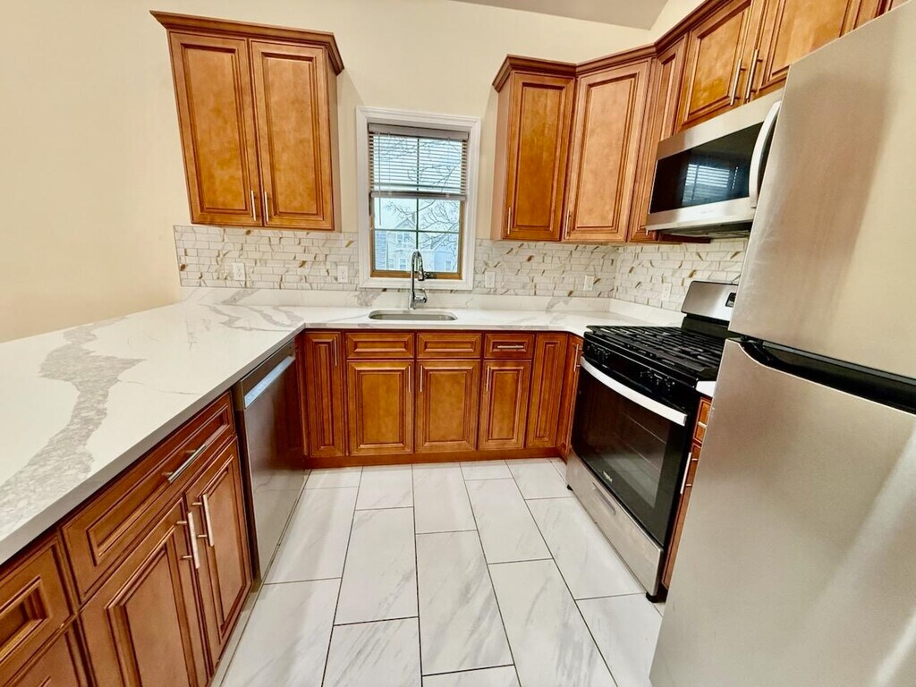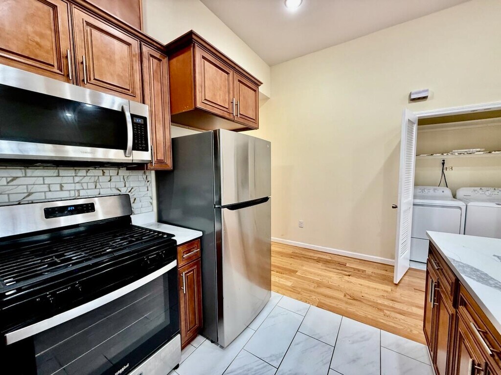Welcome to Bayonne! Move in to this beautiful newer construction home with 3 bedrooms/2 bath, washer & dryer in unit plus 1 car parking spot. Higher ceilings, Juliet Balcony, hardwood floorings throughout, stainless steel appliances and lots of natural sunlight. Spacious kitchen with windows, deeper sink and open layout living room. Top floor level for more comfortable feeling. Close to huge G. Thomas D. 16th St Park and surrounded by different restaurants, coffee shop, doctors offices, schools and mini shopping stores. Easy access to transportation.