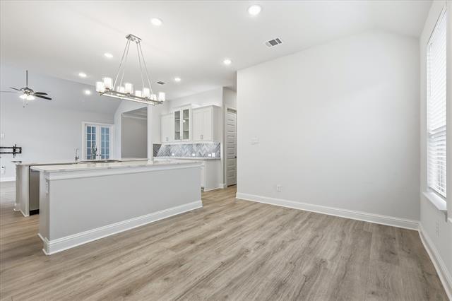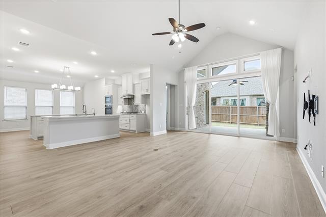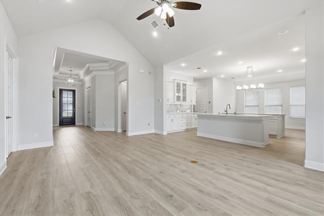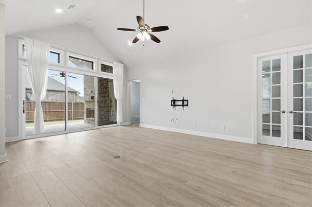 Discover an inspired everyday at The Hills at Legacy. This single-story home combines modern craftsmanship with relaxed Texas living to create a sanctuary for family life and meaningful moments. Sunlight pours into a vaulted family room that frames indoor-outdoor living through an expansive sliding glass wall, turning the covered patio and private corner yard into an extension of your entertaining space. The gourmet kitchen, with two generous islands, slate-hued quartz counters, white custom cabinetry and double oven, invites culinary creativity and weekend gatherings—meals become celebrations, homework becomes conversation at the island. Four restful bedrooms and three full baths plus a powder room offer calm, private retreats; Dual offices provide quiet work and study environment for both husband and wife. Warm wood, elegant tile and soft carpeted touches create a layered, welcoming palette, anchored by a modern metal fireplace that sets the tone for cozy evenings. The tandem garage and generous lot support an active, outdoor-oriented lifestyle—garden, play, or simply unwind on the patio under big Texas skies. Beyond the doorstep, The Hills at Legacy fosters neighborly connection with a clubhouse, pool and trails—perfect for morning walks, weekend swims, and community gatherings. With recent municipal servicing for added peace of mind, this home is ready to host new traditions.