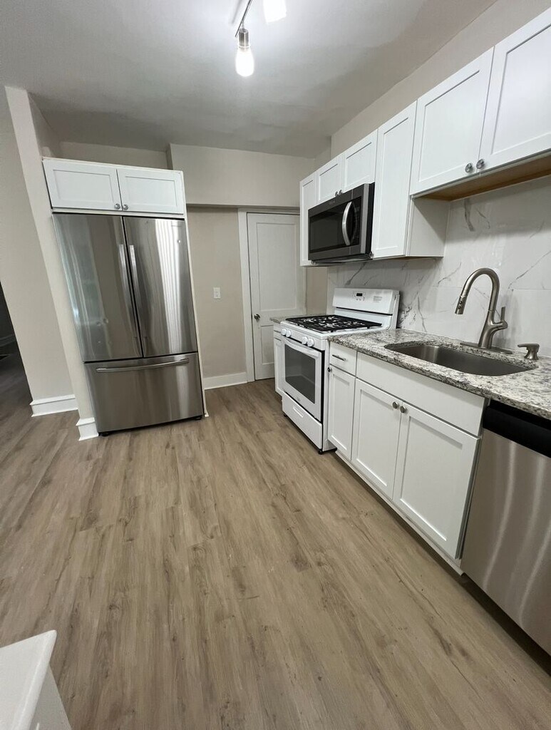 Welcome to this beautifully renovated end unit in Chester, PA. This home boasts three spacious bedrooms and a fully renovated bathroom with a tiled shower. The gourmet kitchen is a chef's dream, equipped with a gas range, stainless steel appliances, a refrigerator, microwave, and dishwasher. The bi-level living space is filled with abundant light, thanks to the skylight and large windows. The home also features luxury vinyl plank flooring throughout, adding a touch of elegance to the space. The in-unit washer and dryer add convenience to your daily routine. The home also offers ample closet space for all your storage needs. The unfinished basement provides additional storage space or can be transformed into a personalized area. The home also features a cozy fireplace for those chilly nights. The exterior of the home is just as impressive with a fenced-in backyard, perfect for outdoor activities, and a welcoming front porch. This home is a true gem in Chester, PA. Please Note: A minimum credit score of 600 and a combined monthly income of at least 3x the rent is required to apply. We do accept Section 8 vouchers for this property.