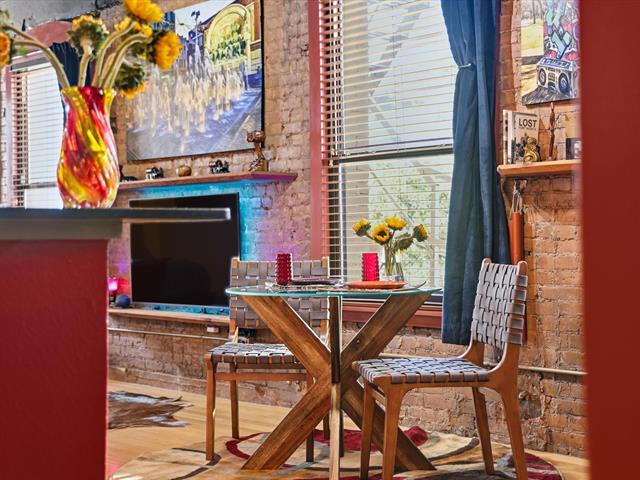 Fully-furnished mid-term rental available for 30+ days. Ideal for corporate travel, traveling medical professionals, or those needing a place to stay while moving or displaced from their home. Built in 1906 as the Western National Bank, this remarkable structure was Fort Worth's first concrete skyscraper and proudly anchored the north end of the city's infamous Hell's Kitchen. For decades, it served as office space until its transformation in the mid-1990s into privately owned condominiums. With 20-inch brick walls and 15-inch concrete floors and ceilings, the building radiates history and character. Warm bamboo flooring, exposed red brick, and vibrant colors create a welcoming atmosphere that reflects its storied past. These walls truly have stories to tell. Come, stay with us and listen to what these walls have to say. Downtown Fort Worth is characterized by its blend of historic western roots and modern urban sophistication, featuring a vibrant and walkable downtown core known as Sundance Square. This area is a hub for business, entertainment, dining, and cultural attractions, with a mix of historic buildings and modern skyscrapers. It's a dynamic district with a strong economy, a variety of leisure activities, and a lively, yet friendly, atmosphere. Mid-term rental (30+ days). All utilities paid.