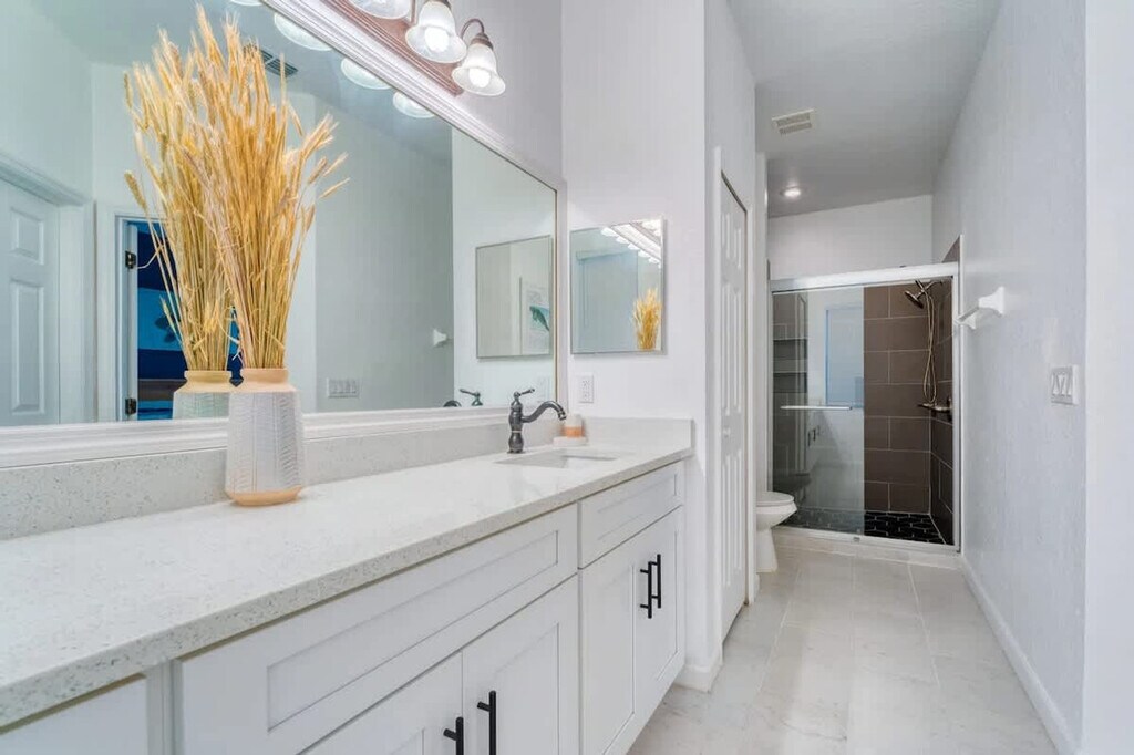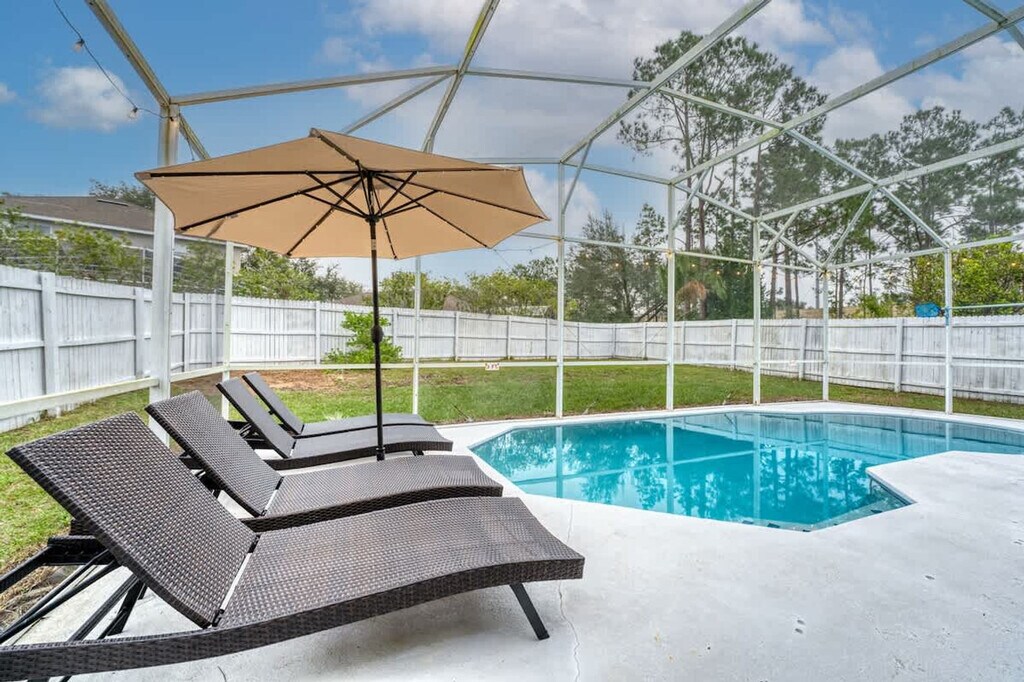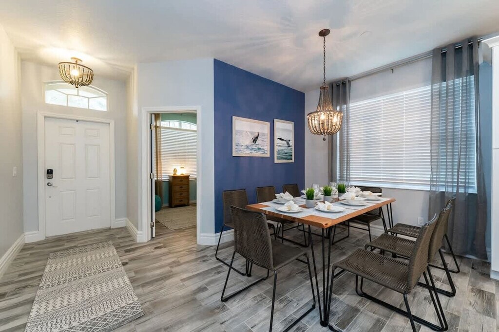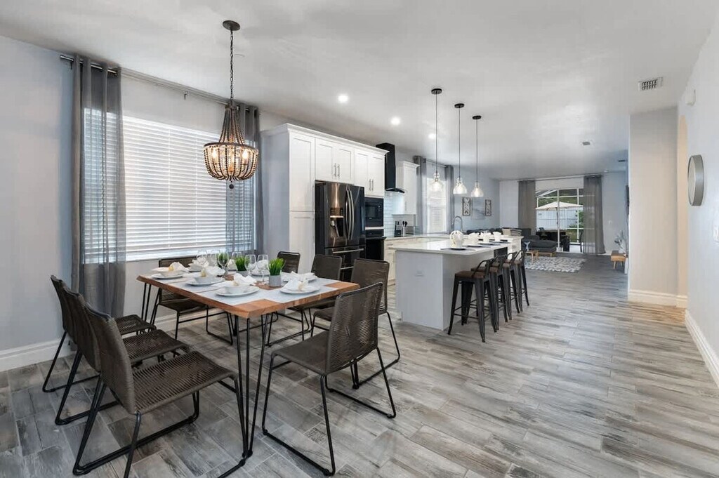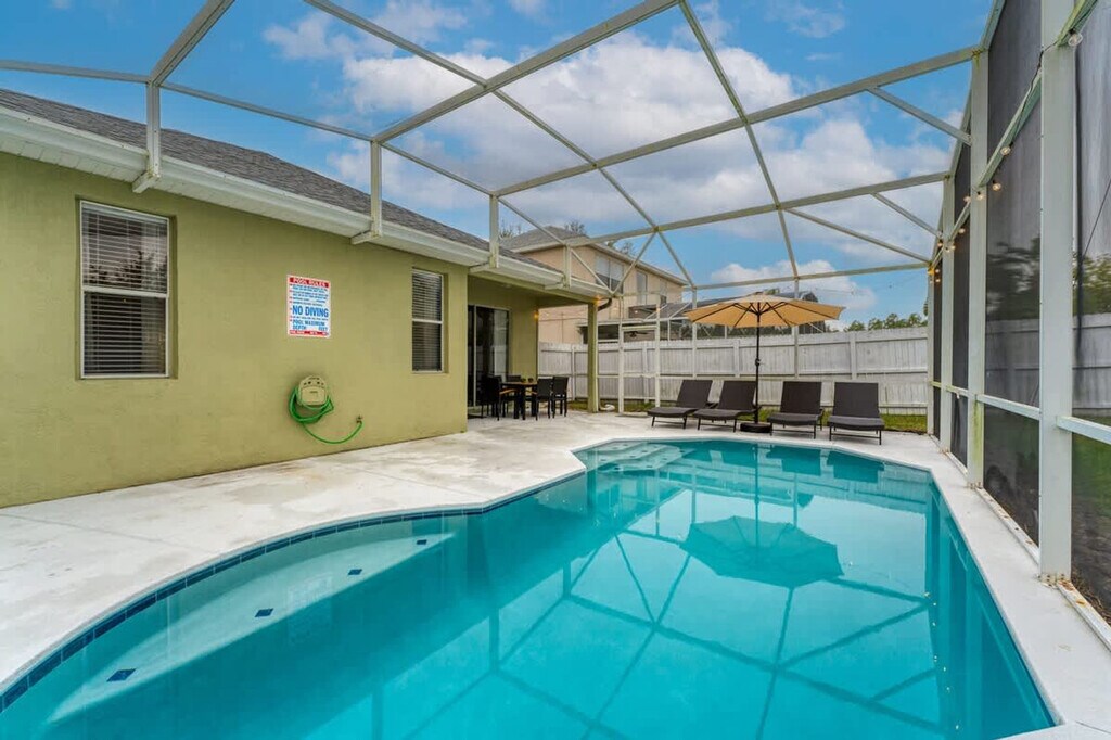 Welcome to your ideal Florida vacation retreat in Highlands Reserve, one of Davenport’s most sought-after communities! This spacious 4-bedroom, 2-bathroom single-story home is designed for families and groups of up to 8 guests, located just 15–20 minutes from Walt Disney World and close to Orlando’s top attractions. This beautifully decorated home features a relaxing blend of wildlife and coastal color schemes, creating a warm and inviting atmosphere that brings the spirit of Florida indoors. This home offers a master suite with a king-size bed, a second bedroom with a queen-size bed, a third bedroom with another queen-size bed, and a fourth bedroom with a bunk bed featuring two twin beds, ideal for children. The property includes two full bathrooms that are clean, modern, and family-friendly. Enjoy an open-plan living and dining area with a large TV and comfy seating, a fully equipped kitchen with modern appliances, cookware, and utensils, and a private screened-in pool with outdoor seating. Additional amenities include a game room with an Xbox, air hockey table, and flat-screen TV, high-speed Wi-Fi, smart TVs, central A/C, a washer and dryer, and a private driveway with space for two vehicles. Optional services available for an extra fee include pool heating, recommended in colder months, BBQ grill rental, perfect for poolside cookouts, and theme park ticket sales to all major attractions. Located in the highly sought-after Highlands Reserve golf community, the home offers a safe, quiet environment surrounded by palm-lined streets and well-maintained landscapes. You'll also be just minutes from grocery stores, restaurants, golf courses, and major Orlando attractions like Disney, Universal, and LEGOLAND. Nearby Interstate 4 provides quick access to the beaches near Tampa on the west coast, the space coast beaches near Cocoa and Melbourne, or the many attractions of Metro Orlando, including Universal Studios, Sea World, and Science Museum. Nearby Lakeland offers Legoland, pro basketball, an art museum, wilderness hikes, and many other options in a lovely small city environment. Stroll through quaint shopping towns nearby, including Mt. Dora, Winter Garden, and downtown Clermont with its marvelous winery, Lakeridge. Quiet hours are between 10:00 PM and 6:00 AM. Check-in is at 4:00 PM, and check-out is before 10:00 AM. Early check-in and late check-out can be arranged for an additional fee if the home is available. Smoking, vaping, and e-cigarettes are strictly prohibited in or near the property, with a minimum fine of $500 for violations. Pets are not permitted, and if discovered, there is an automatic charge of $450 for cleaning, and guests will be asked to leave without a refund. Firearms are prohibited, and any illegal activities will result in eviction without a refund. Guests must adhere to all community and Homeowner Association rules, including parking regulations and noise restrictions. Trash must be placed in designated carts, and failure to comply will incur a $100 charge. The air conditioning should not be set below 74 degrees Fahrenheit to prevent freezing, and guests will be responsible for any technician charges if this occurs. [SI]