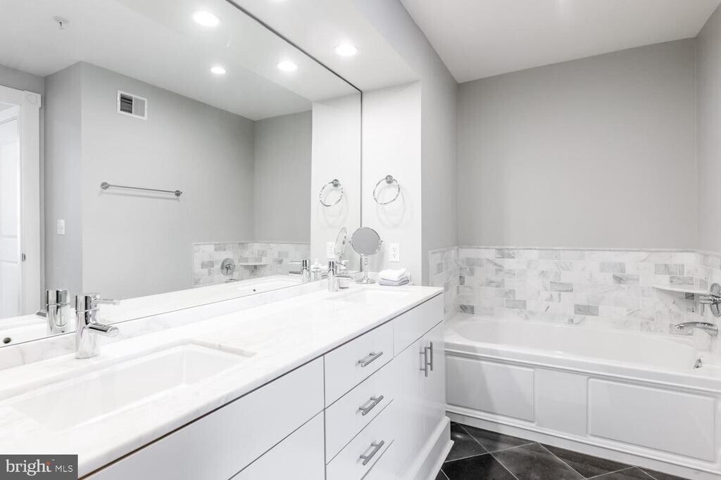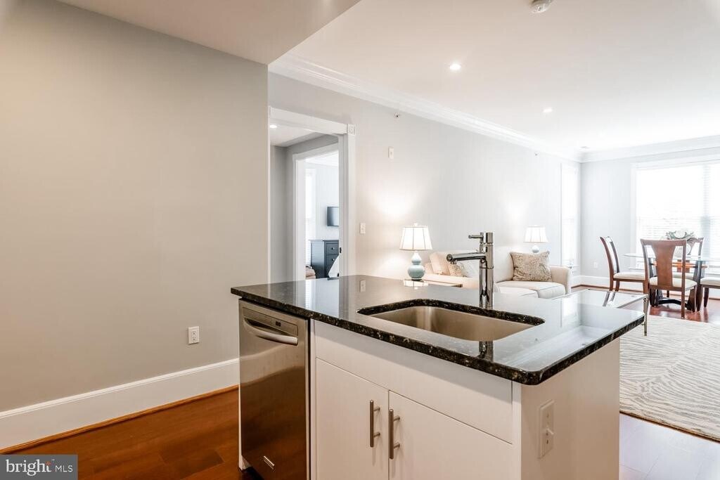 Rarely available first floor corner unit with patio in sought after 900 North Washington Condos. Direct access to the unit from patio. Immediately available. One garage space and one storage space. High ceilings, beautiful millwork throughout, Brazilian cherry floors. Gourmet island kitchen with Subzero refrigerator, granite counters, Grohe fixtures and stainless steel appliances. Enjoy the spa like master bath with marble counters, marble subway tile, quartz floors, soaking tub and separate glass enclosed shower. Walk to Harris Teeter, Braddock metro, West Elm, many wonderful restaurants, the Potomac River and all that Old Town has to offer. Community has 2 roof top terraces, a community room and 3 exercise rooms.