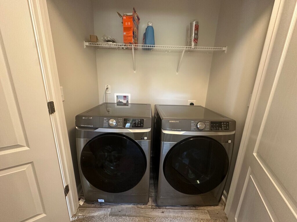 Welcome to 910 Sapphire Stone Ln, a new build from 2023. A spacious 4-bedroom, 2.5-bathroom home offering 1,925 sq. ft. of comfortable living space. The house has been freshly painted for a smooth move-in process. All bedrooms and the laundry room are conveniently located upstairs, providing separation between living and sleeping areas. The interior features a mix of carpet and luxury plank flooring, while the backyard is fully enclosed with a privacy fence, perfect for relaxation or entertaining. This property is part of the Southeastern HOA and is a no-pet home.