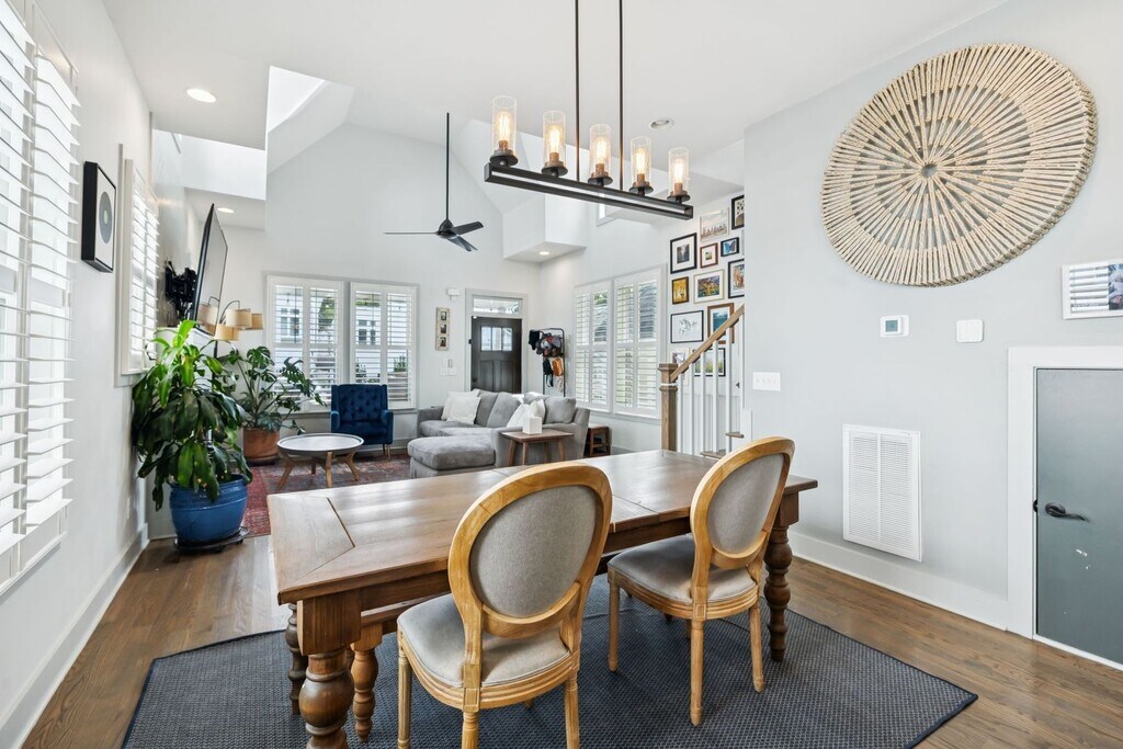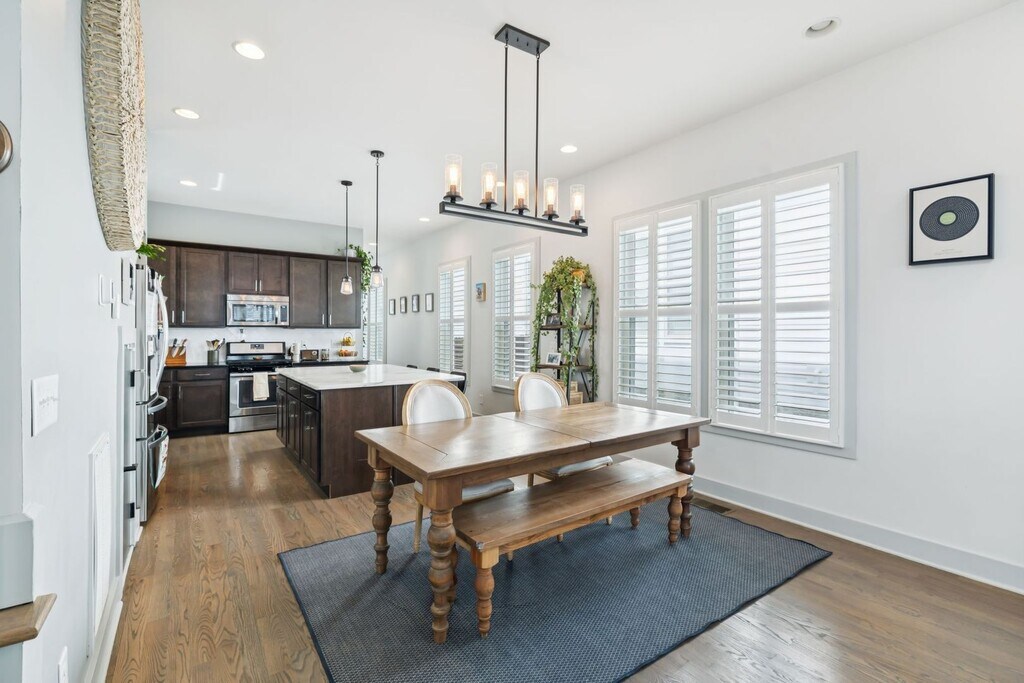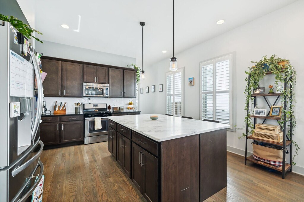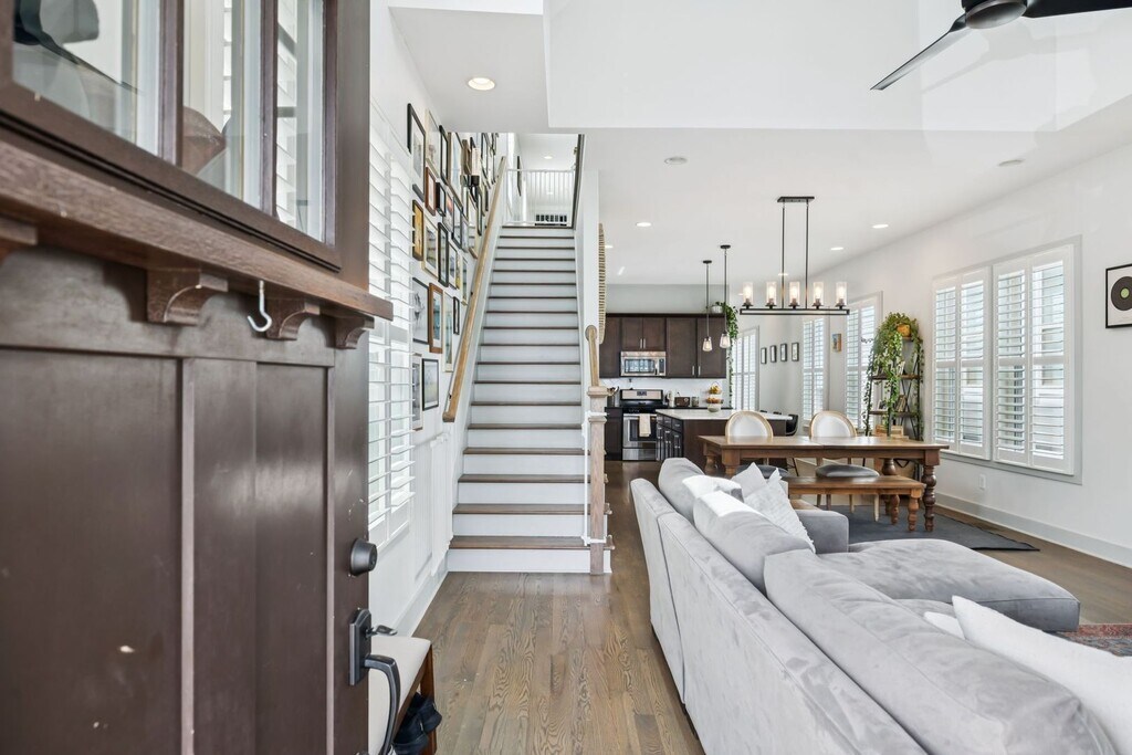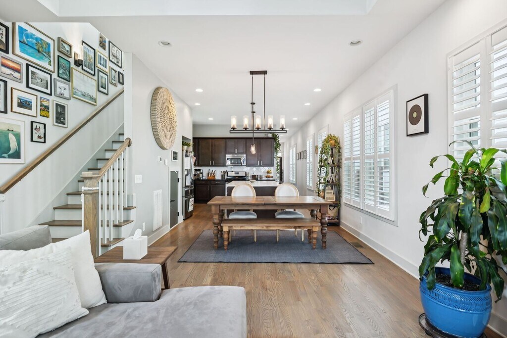 Welcome to your new East Nashville retreat, a beautifully designed 3-bedroom, 2.5-bath home with 1957 ft.² of thoughtfully curated living space and a versatile loft/bonus area. From the moment you enter, you’ll be greeted by soaring two-story vaulted ceilings in the living room that create an airy, open feel filled with natural light. The kitchen serves as the heart of the home, featuring an oversized island, stainless steel appliances, and an easy flow into the dining and living areas, perfect for entertaining or relaxing with family. Every detail has been considered, from the custom trim and finishes throughout to the modern, functional layout that balances style and comfort. The primary suite on the main level offers convenience and privacy, while upstairs you’ll find two spacious bedrooms, a full bathroom, and a bonus room ideal for a home office, media space, or playroom. The only carpet in the home is in the two upstairs bedrooms, maintaining a sleek, clean aesthetic throughout. Outside, enjoy a fully fenced backyard with a paver patio, grassy area, and professional landscaping, ideal for gatherings or quiet evenings outdoors. The covered front porch is perfect for morning coffee or evening relaxation, adding even more charm to this East Nashville gem. Located in one of the city’s most desirable neighborhoods, you’re within walking distance to local favorites like Elegy Coffee, Nicoletto’s, and Frankie’s, and just minutes from parks, gyms, venues, and downtown Nashville. Lawn maintenance is included in rent, while tenants are responsible for utilities and renter’s insurance. All appliances remain, and the home is move-in ready with 24-hour notice required for showings. This property perfectly combines East Nashville character with modern finishes, flexible living spaces, and an unbeatable location, offering both lifestyle and luxury in one incredible home.