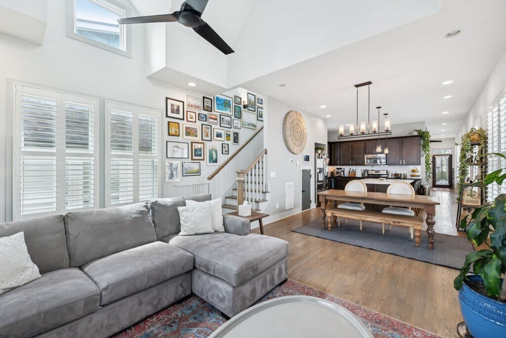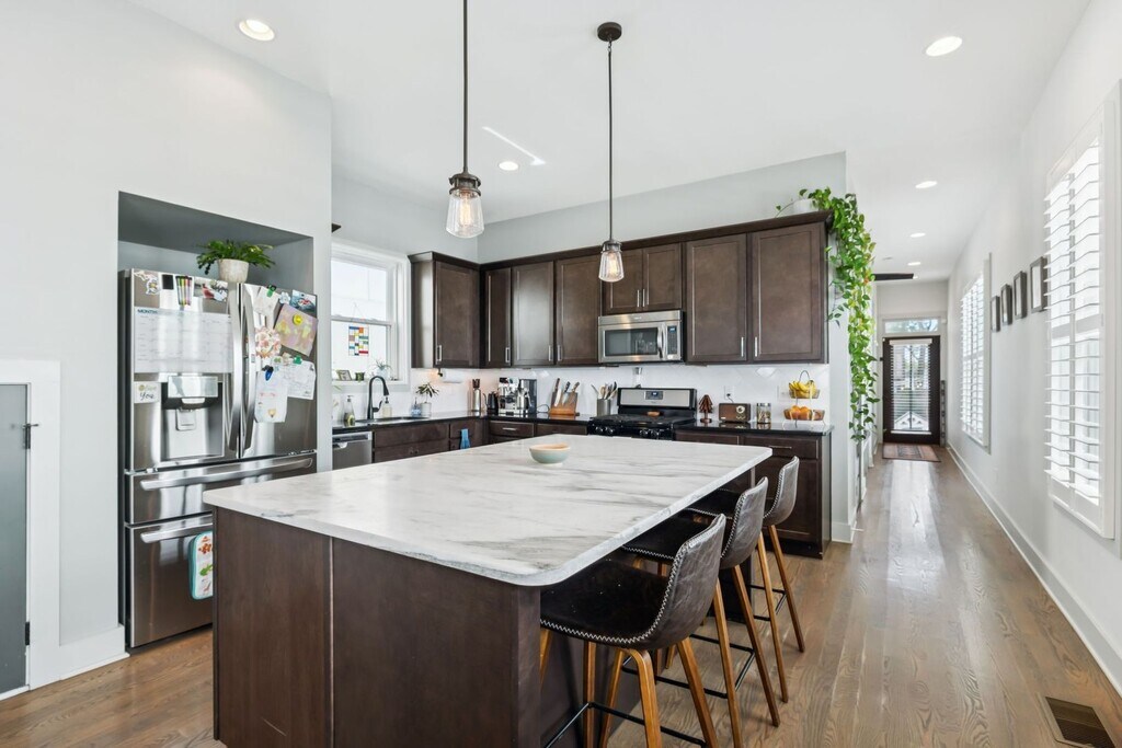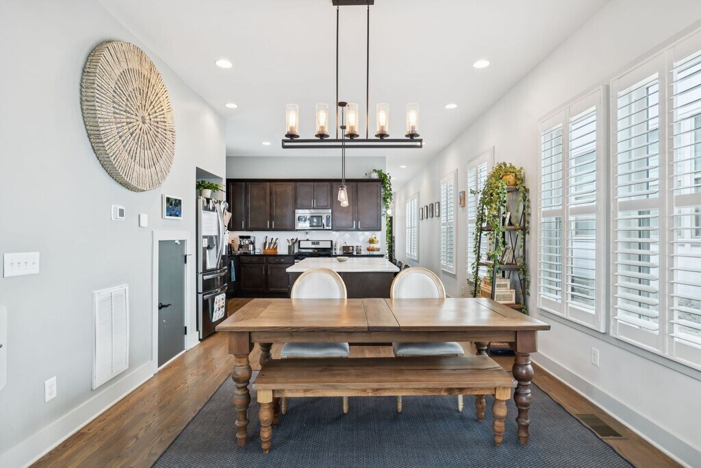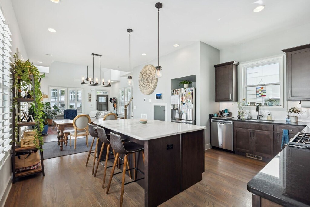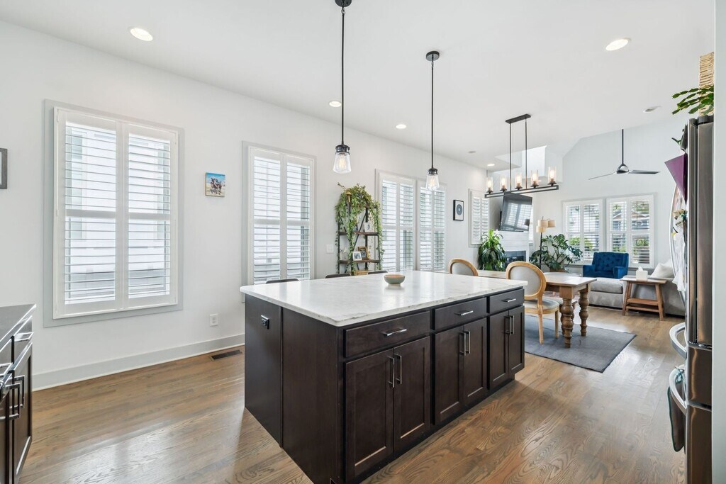 Welcome to your new East Nashville retreat, a beautifully designed 3-bedroom, 2.5-bath home with 1957 ft.² of thoughtfully curated living space and a versatile loft/bonus area. From the moment you enter, you’ll be greeted by soaring two-story vaulted ceilings in the living room that create an airy, open feel filled with natural light. The kitchen serves as the heart of the home, featuring an oversized island, stainless steel appliances, and an easy flow into the dining and living areas, perfect for entertaining or relaxing with family. Every detail has been considered, from the custom trim and finishes throughout to the modern, functional layout that balances style and comfort. The primary suite on the main level offers convenience and privacy, while upstairs you’ll find two spacious bedrooms, a full bathroom, and a bonus room ideal for a home office, media space, or playroom. The only carpet in the home is in the two upstairs bedrooms, maintaining a sleek, clean aesthetic throughout. Outside, enjoy a fully fenced backyard with a paver patio, grassy area, and professional landscaping, ideal for gatherings or quiet evenings outdoors. The covered front porch is perfect for morning coffee or evening relaxation, adding even more charm to this East Nashville gem. Located in one of the city’s most desirable neighborhoods, you’re within walking distance to local favorites like Elegy Coffee, Nicoletto’s, and Frankie’s, and just minutes from parks, gyms, venues, and downtown Nashville. Lawn maintenance is included in rent, while tenants are responsible for utilities and renter’s insurance. All appliances remain, and the home is move-in ready with 24-hour notice required for showings. This property perfectly combines East Nashville character with modern finishes, flexible living spaces, and an unbeatable location, offering both lifestyle and luxury in one incredible home.