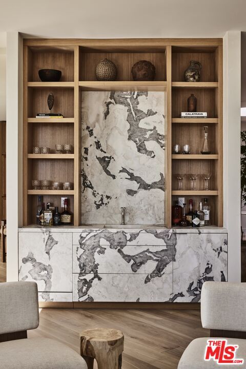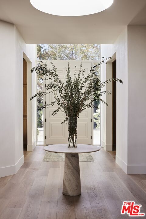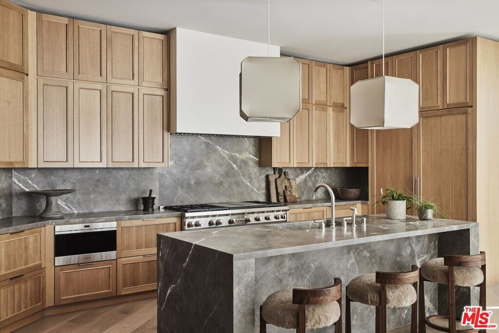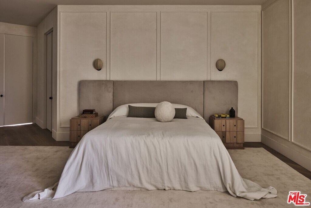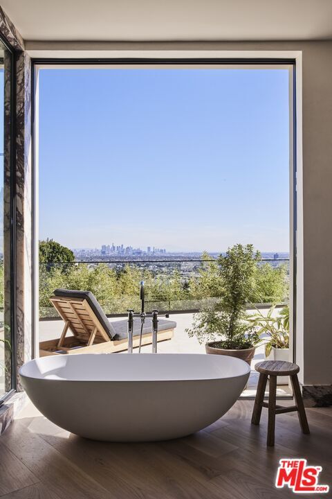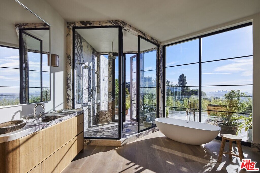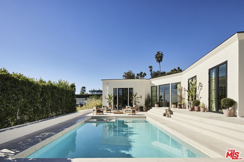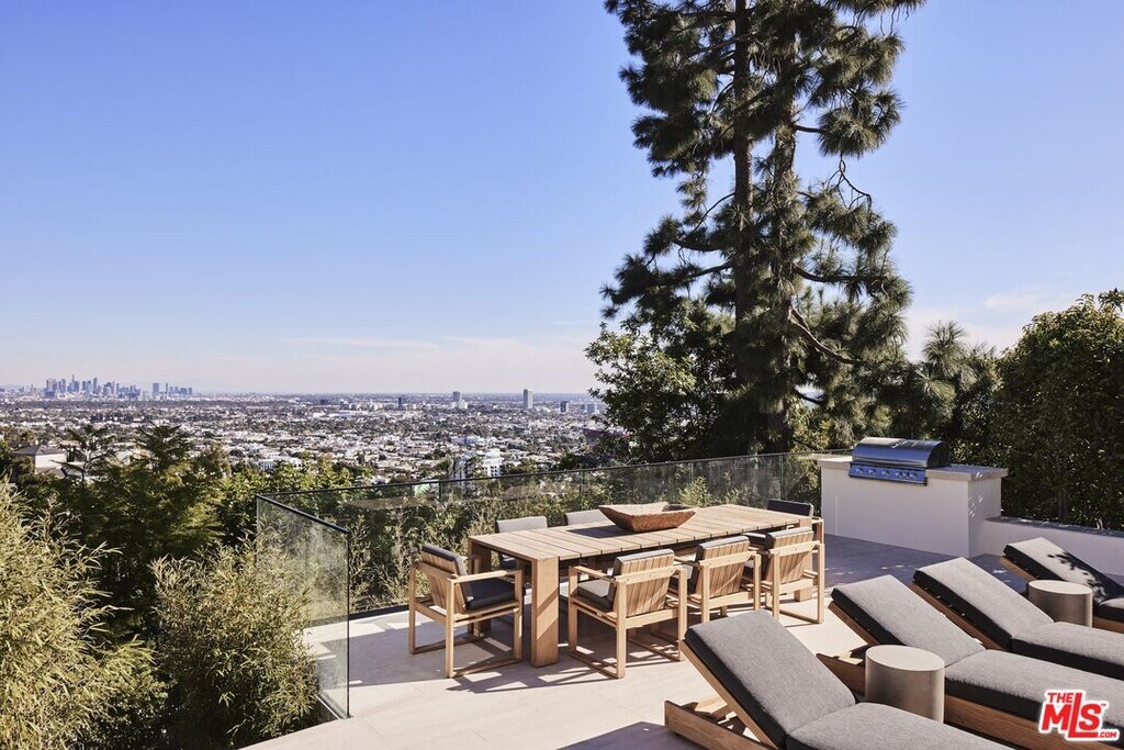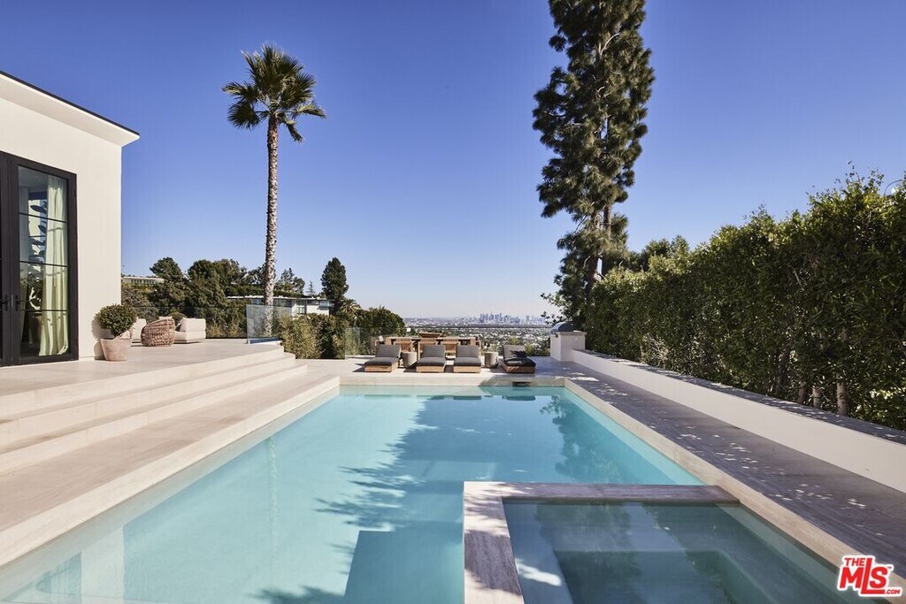 OSKLO has reimagined this Hollywood Regency Villa, tucked behind grand gates and a motor court at the end of an exclusive cul-de-sac. A remarkable surprise awaits: a single-level masterpiece perched on an approximately 2/3-acre view promontory. Recently completed after a multiyear renovation, this home boasts soaring ceilings, an open floor plan, and expansive public spaces that seamlessly transition to broad terraces and a generous pool. Revel in breathtaking views stretching from Downtown to the Pacific Ocean. The glamorous living room features a hidden white marble bar, while the gourmet kitchen is a true standout. The impressive dining room, complete with a fireplace, sets the stage for grand entertaining. A richly paneled library and billiard room enhance the home's allure. The primary suite is exceptional, with Calacatta Viola marble flowing from the indoor shower to the outdoor areas. Three additional guest rooms further distinguish this extraordinary residence, which is shown exclusively to prequalified lessees. MLS# 26638665