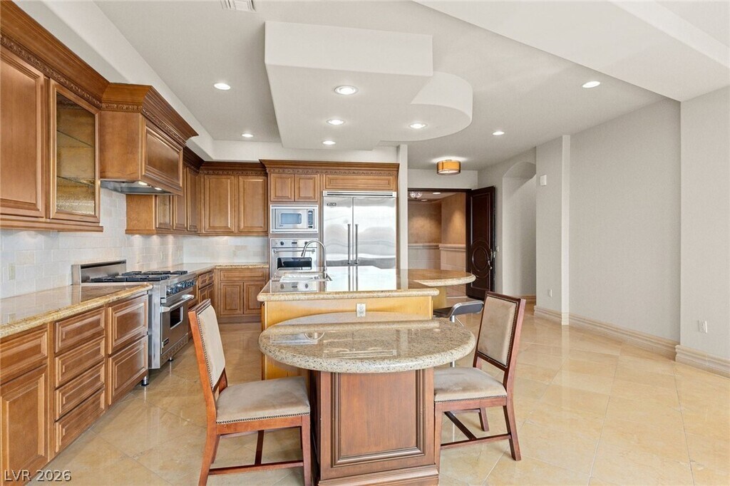 Step into luxury with this beautifully appointed 2 bed residence located on the Terrace level of One Queensridge Place. Designed with an open-concept layout & framed by expansive picture windows, the home is bathed in natural light & offers a blend of style & comfort. The gourmet kitchen is a chef’s dream, feat a generous island & a top-of-the-line Viking SS appliance suite. The primary suite is a true retreat, complete with a spacious walk-in closet & spa-inspired bath showcasing a steam shower, jetted tub & dual vanities. The guest suite offers a walk-in closet & en-suite bath. Residents of OQP enjoy an unparalleled lifestyle with world-class amenities, daily coffee bar, indoor & outdoor pools, wine cellar, billiards room, media, conference & card rooms. The state-of-the-art fitness center feats a Pilates and yoga studio, while the luxurious Roman-style spas offer steam rooms, saunas & jacuzzis in both the men’s and women’s facilities. This is sophisticated living at its finest!