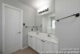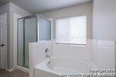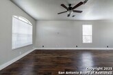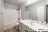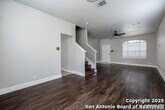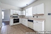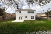 Discover this spacious two-story home tucked away on a cul-de-sac in the desirable Tezel Oaks subdivision. Designed with style and comfort in mind, the interior showcases luxury vinyl flooring and ceramic tile throughout-completely carpet-free for easy maintenance. The layout includes two distinct dining areas: a formal dining space and a bright eat-in kitchen. A refrigerator is provided for added convenience. Upstairs, all four bedrooms are situated around a generous landing, creating an open and inviting atmosphere. The primary suite features a ceiling fan, dual vanities, a walk-in shower, and a relaxing garden tub. Step outside to enjoy the expansive patio slab, oversized yard, and the added privacy of no neighbors directly behind. With convenient access to Lackland AFB, the Medical Center, Loop 1604, shopping, and dining, this home offers both comfort and connectivity.