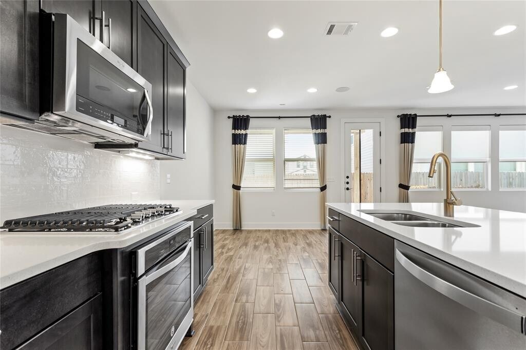 Beautiful model home with upgrades galore! Built-in speaker & surveillance cameras, recessed lighting, upgraded cabinets, backsplash & silestone countertops, stainless steel appliances, wood looking tile floors. This home offers an office downstairs, 3 bedrooms upstairs, open concept that is perfect for entertaining. It also has walls of windows for great natural light and high ceilings. Enjoy your evenings on the back deck equipped with a pergola. Conveniently located with easy access to 183, Parmer, toll 45, Apple campus, major employers, shopping, restaurants. Low maintenance yard - HOA covers mowing in the front yard. The low maintenance backyard is xeriscaped. MLS ID 7768248