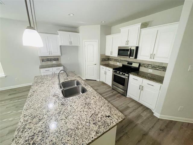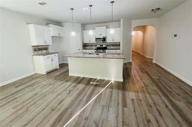 Beautiful 4-Bedroom Home in Saginaw area, conveniently located close to shops, restaurants, and everyday amenities. This stunning floor plan features 4 bedrooms, 2 baths, and a 2-car garage. The open-concept layout offers high ceilings and vinyl plank flooring throughout. The kitchen is complete with granite countertops, a gas stove, and a semi walk-in pantry with lighting. The split-bedroom design provides privacy, while the primary suite includes a double vanity with granite countertops, a separate shower, and a spacious walk-in closet. Additional features include 2†window blinds throughout.