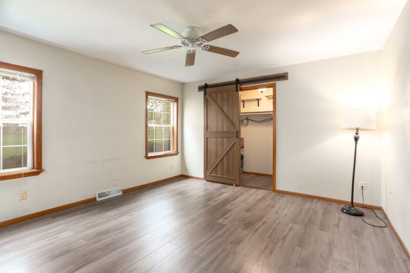 Property Id: 2118765 Updated one level home with 3 bedrooms and 2 bathrooms. Large kitchen, spacious open floor plan, and fully fenced backyard. Two car heated garage, covered deck, and outbuilding for storage or workshop space. Conveniently located 5 minutes outside of Baldwin WI. Fenced paddocks/pastures. Barn with run in stalls, electric, well, tack area, and chicken coop. Rent: $2000. Pets allowed with approval (+$100 per equine/livestock rent if used). Available November 15th, 2025.
