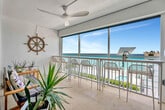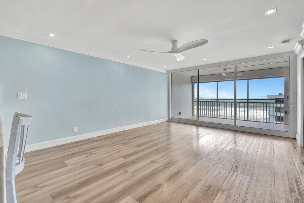 This is a 7th floor, clear North East view of the ocean with Hurricane windows. totally upgraded with a fabulous kitchen with many extras. Primary suite is directly east with a slider to the balcony. the secondary bedroom is directly across from the guest bath. Washer and dryer are full size and in the condo. The balcony has an automatic remote control for an awning, a screen, and hurricane protection. This a most comfortable condo apartment with update features in the Juno beach area. Community pool and Card/Party room just off the Pool area. There is a same floor storage bin and trash-shoot next to elevators.