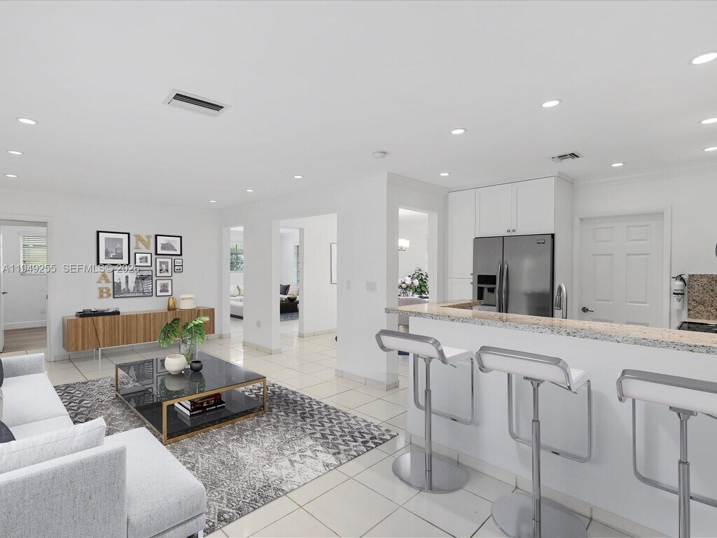 Beautifully Updated Coral Gables 3 Bedroom 2 Bath home on a lovely tree-lined, very low-traffic street. Fully remodeled with New Open Kitchen with 42 White Single Shaker style cabinets and Stainless Steel appliances! Large 1 Car Garage with Full Size Washer & Dryer! 2-Zone Rheem A/C System and Recessed Lighting throughout! Family Room, Formal Living Room, Formal Dining Room and Breakfast Area. Master Bedroom with California Walk-In Closets and Marble Bathroom with Double Sink and spacious, Frameless glass-enclosed shower! Circular Driveway, Fenced Backyard and a Covered Patio for BBQ & Entertaining outdoors! BEST RENTAL IN CORAL GABLES UNDER $5,000! Call Carlos for easy showings! MLS # A11949255