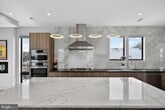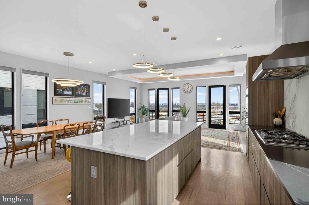 A stunning custom, modern contemporary, in a one of a kind setting. 4 impeccable levels! A view to die for and location location LOCATION! The home overlooks Washington DC, memorials and historical landmarks. Literally just a walk to the pentagon. Designer features throughout. Gourmet Kitchen, custom cabinetry, huge center island the home is completely neutral decor and absolutely sun plashed! filled with abundant natural light. The property is tastefully decorated and is available as partially furnished. ** PROFESSIONAL PHOTOS TO COME & 3D MOVING TOUR ** FLOOR PLANS enter on the main level with 9ft ceilings , two bedrooms and a full hall bath , laundry room #1, go up to the kitchen level with living room + dining room. Top level hosts the primary suite, amazing views from panoramic windows, and juliet balcony, closets and exquisite luxury bathroom! laundry closet #2, and a Jr Suite with private full bath! The fully finished basement has 9 ft ceilings a full bath and rec-room, lower level ghas walk up stairs to side yard. Very low maintenance lot. An attached one car garage and one car driveway space. No HOA. Street parking is steps away. Unique and one of a kind, move in ready!